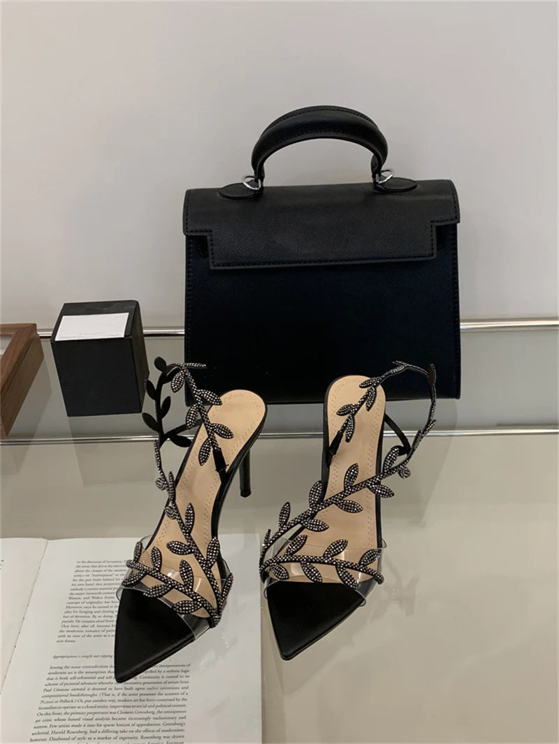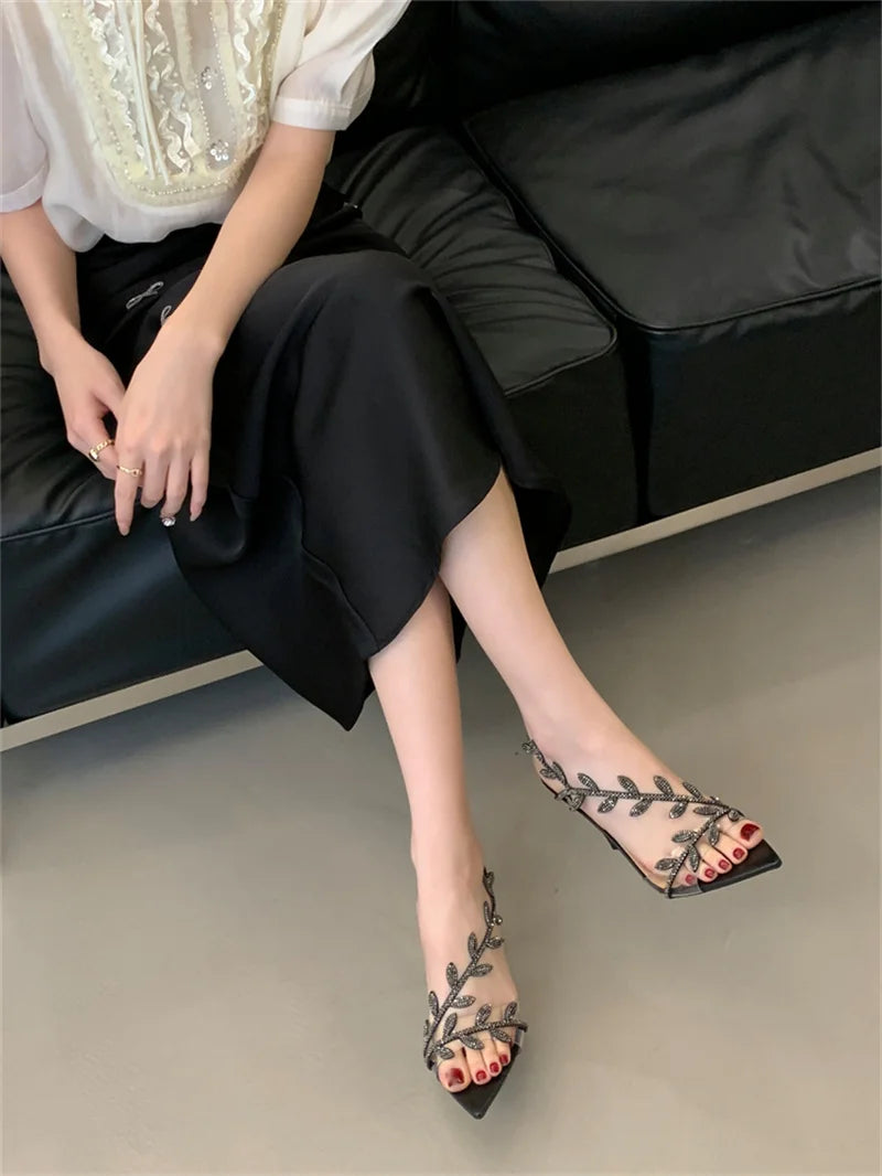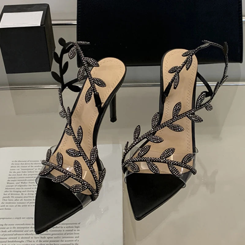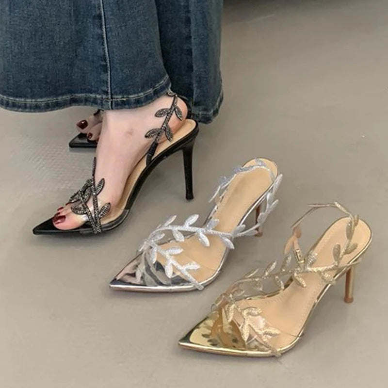 Elevate your style with our Crystal Rhinestone Gold Leaf Women Sandals. Embodying sophistication and effortless glam, these sandals feature sparkling crystal rhinestones and delicate gold leaf accents. Perfect for any occasion, these sandals will add a touch of elegance to your outfit.