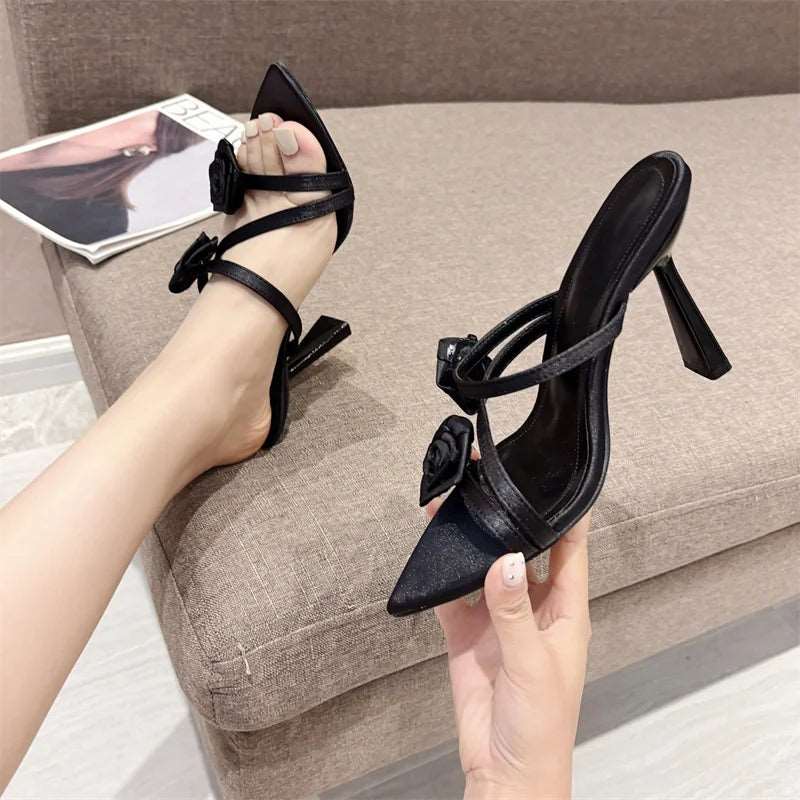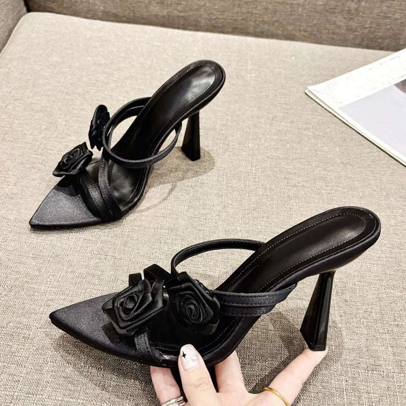 Satin Rose Flower Women's high heel Sandals