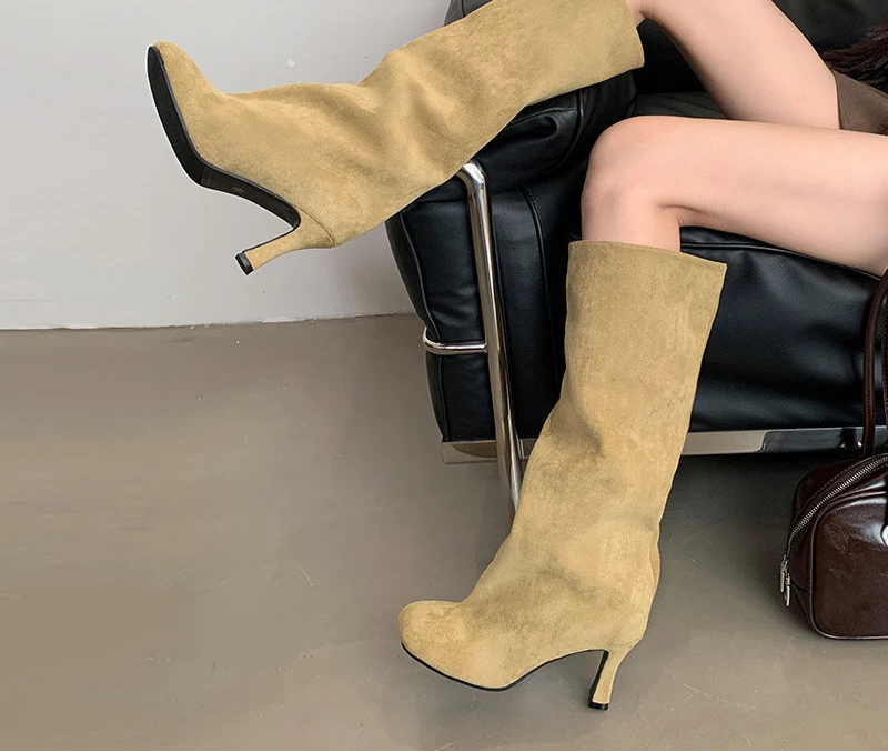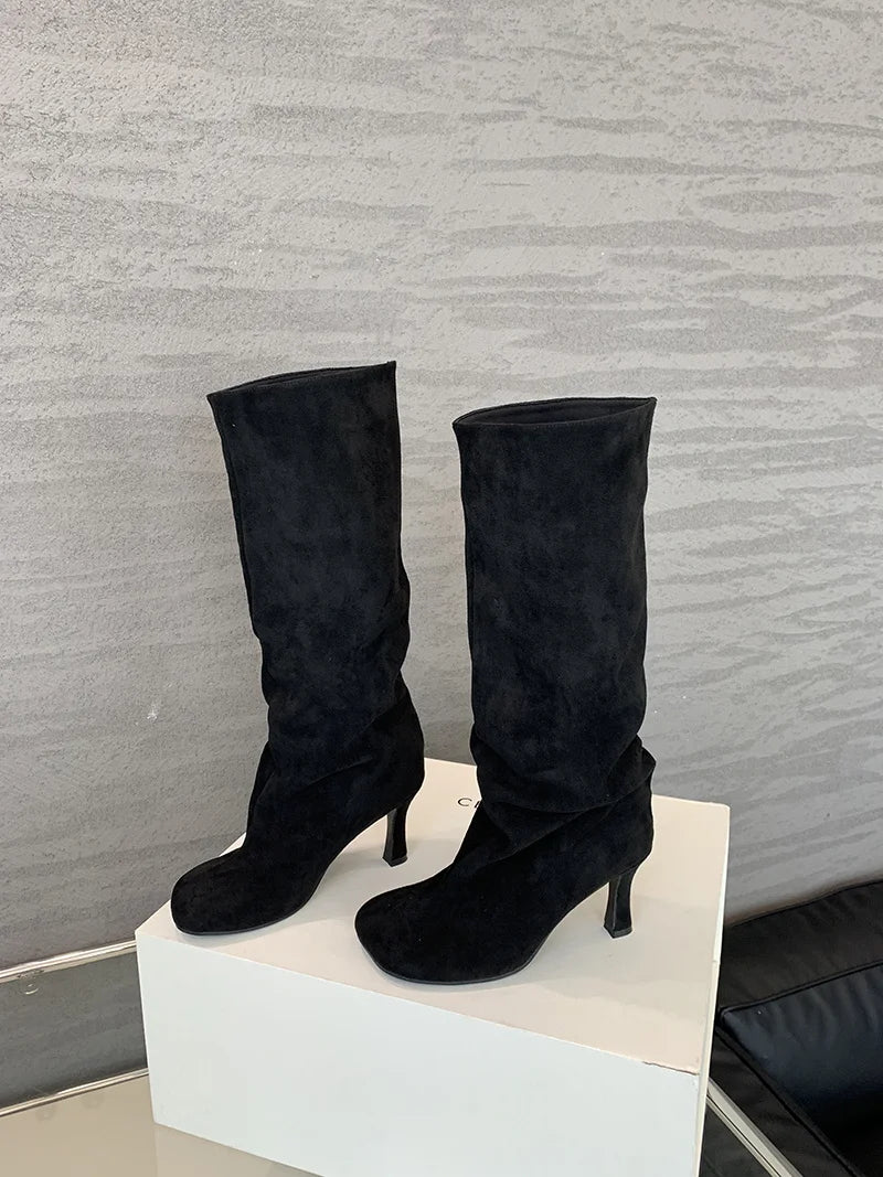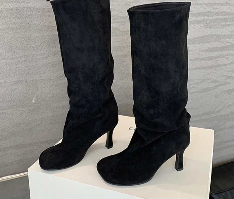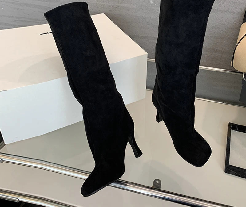 Square Toe Slip On Knee High women's Boots