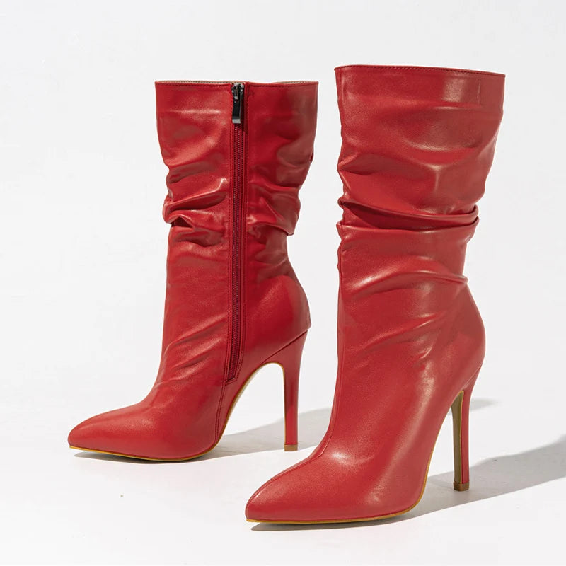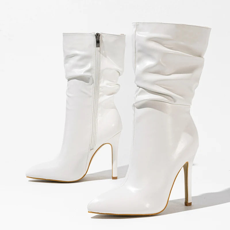 Time to upgrade your shoe collection with our High Quality Solid Black Pleated faux Leather Boots.