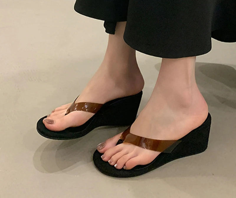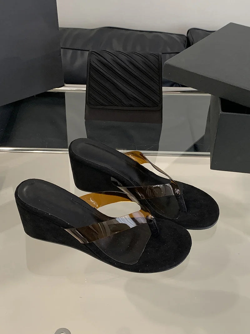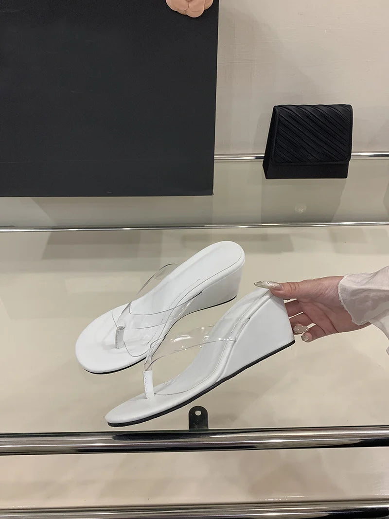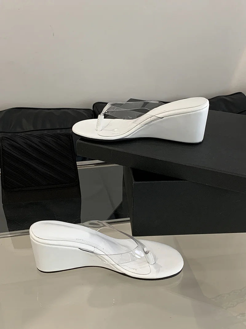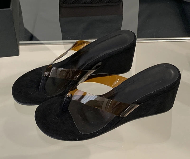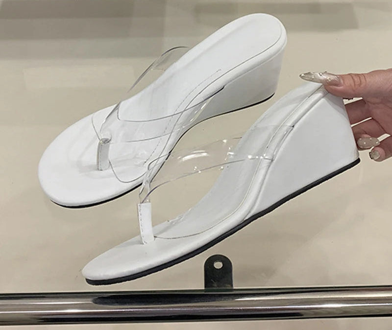 Introducing the latest trend in footwear - the PVC Transparent toe post Wedge Sandals.