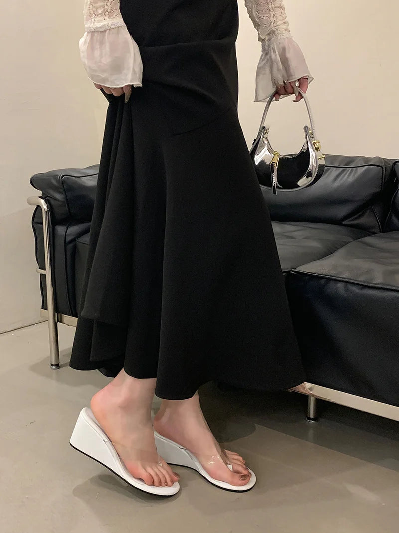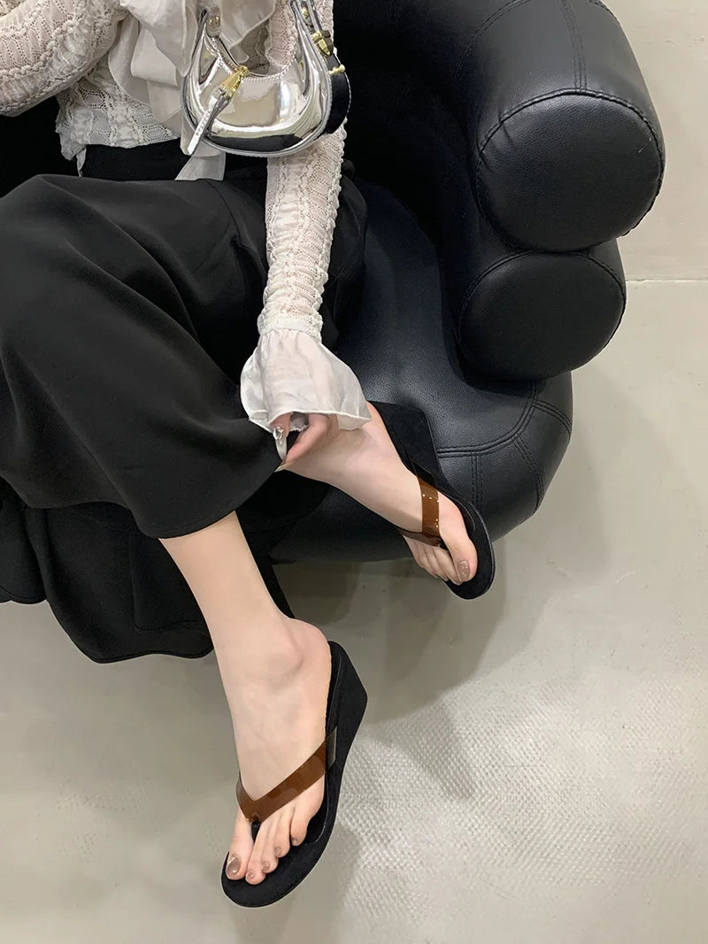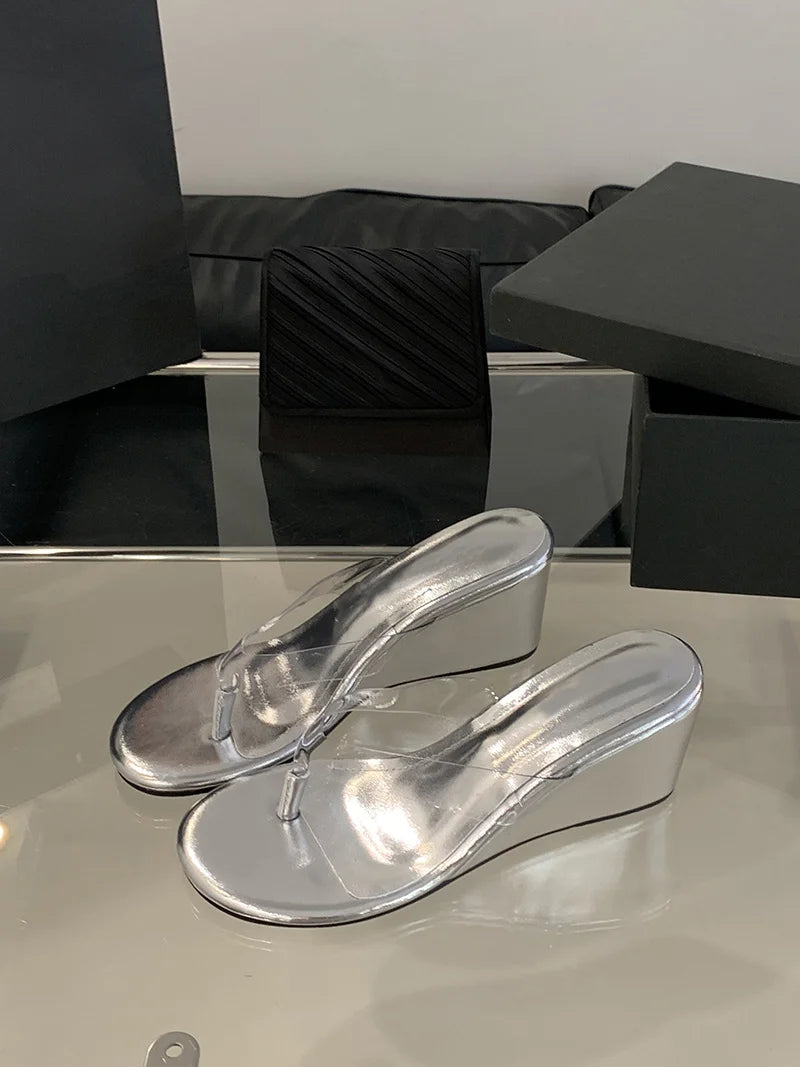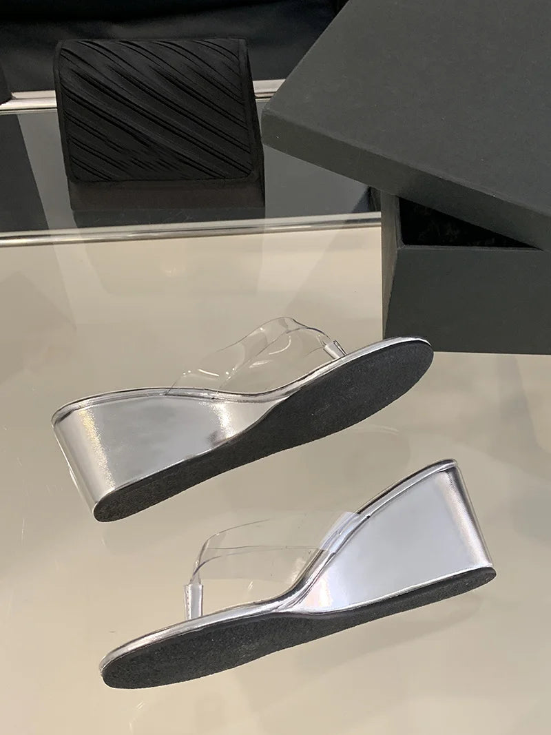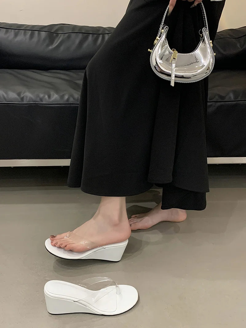 Introducing the latest trend in footwear - the PVC Transparent toe post Wedge Sandals.