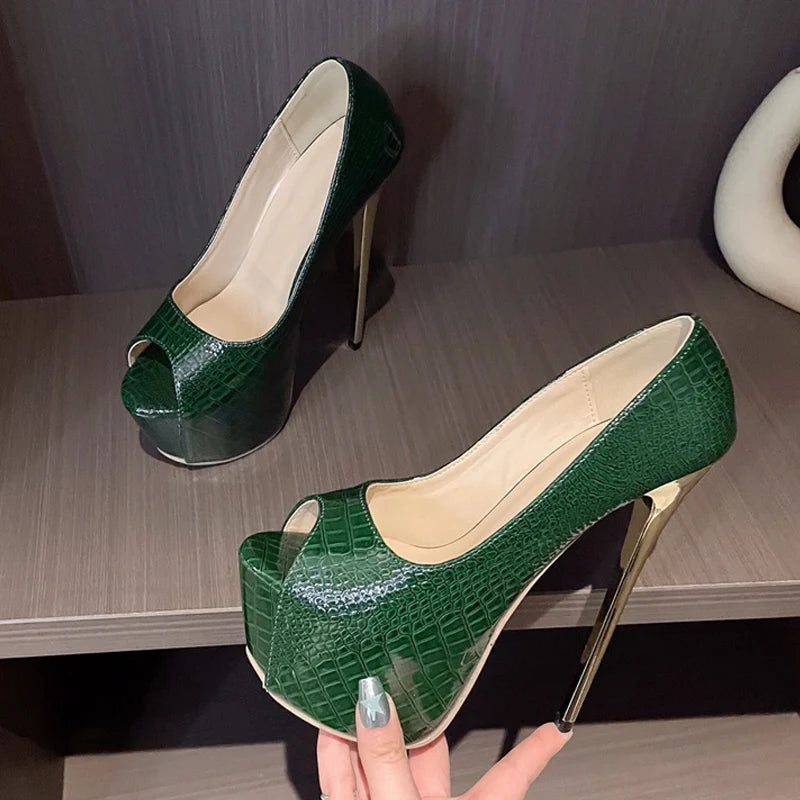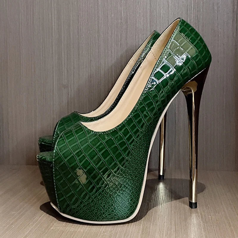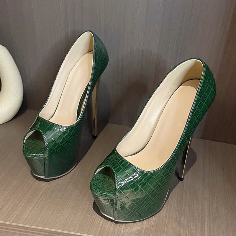 The peep toe design adds a touch of flirtiness, while the platform adds height and stability. The rubber outsole ensures a firm grip, making these heels perfect for parties and other special occasions. Elevate your style game with the Runway Sexy Extreme High Heels.