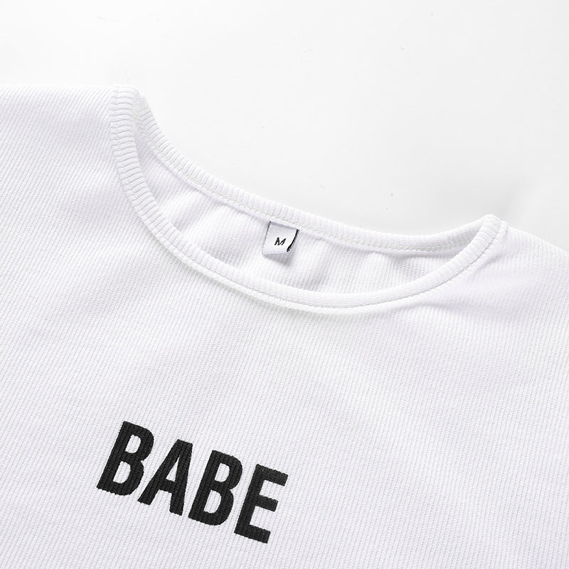 Round neck Long Sleeve Bodysuit with 'Babe' print