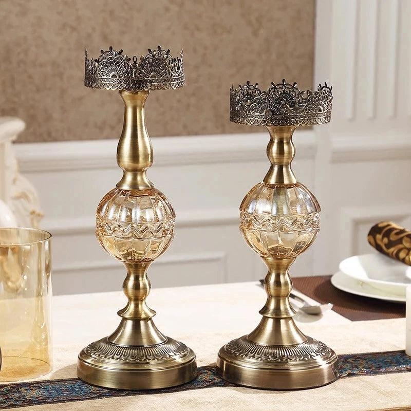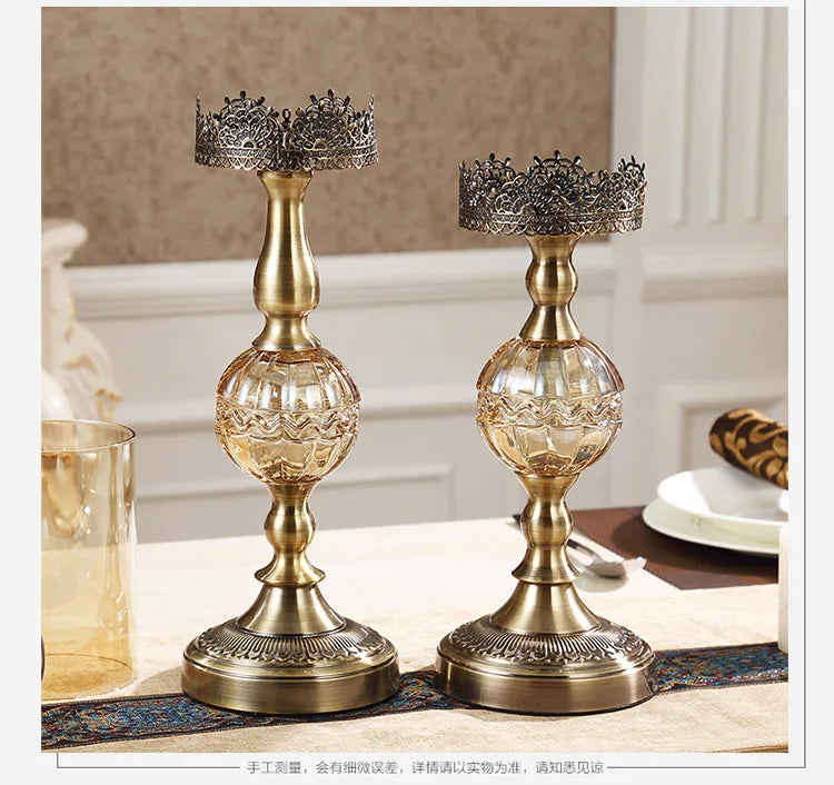 Elevate the ambiance of any room with our Luxury Crystal Metal retro Candle Holder. This exquisite piece is not only a functional candle holder, but also a stunning decor item that exudes elegance and sophistication. Elevate your home decor and impress your guests with this luxurious addition.