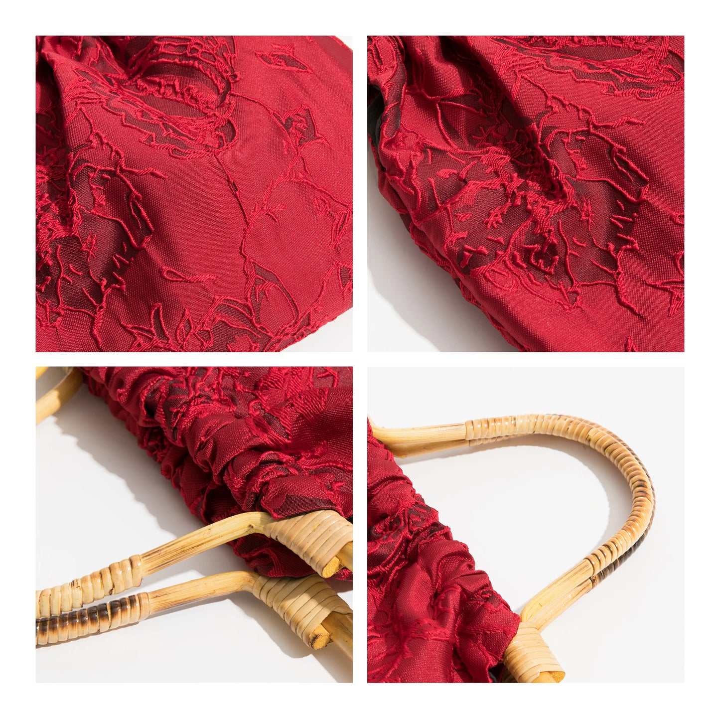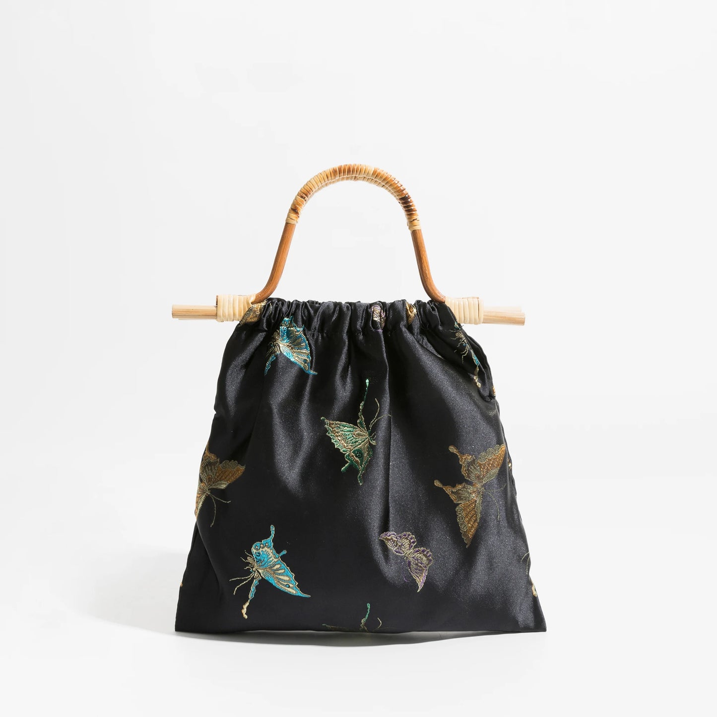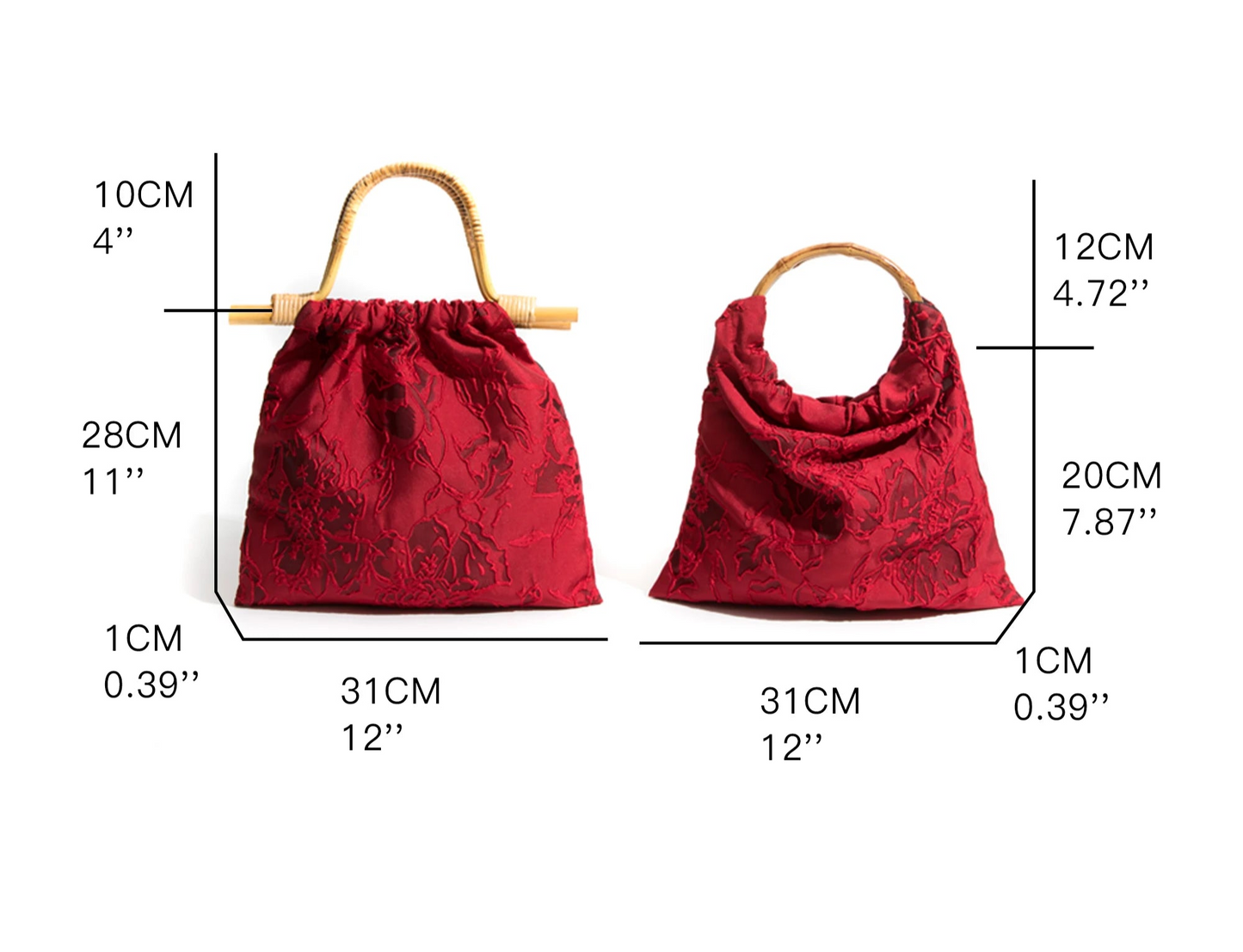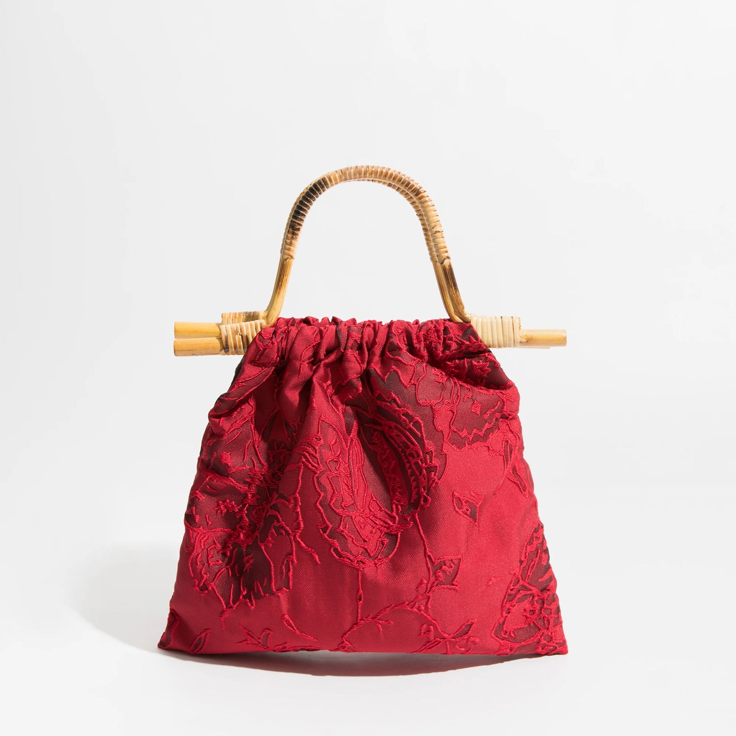 Made with high-quality jacquard material, this handbag is both durable and stylish. The intricate embroidery adds a touch of sophistication, making it the perfect statement piece for any occasion. The nylon lining ensures that your belongings are safe and secure, while the bamboo handle adds a touch of natural beauty.