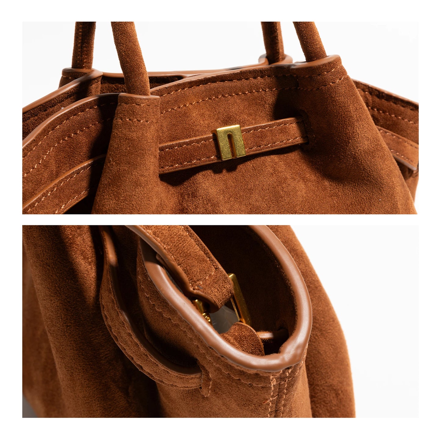 Introducing the must-have accessory for any fashion-forward individual - the Retro Faux Suede Tote Handbag.