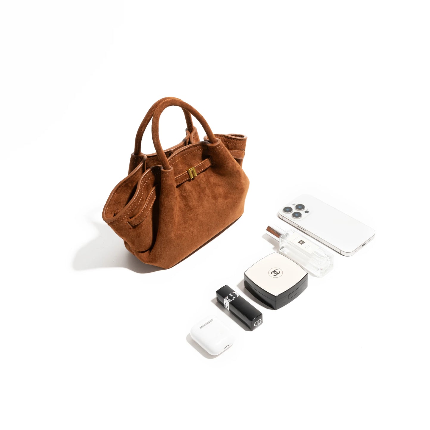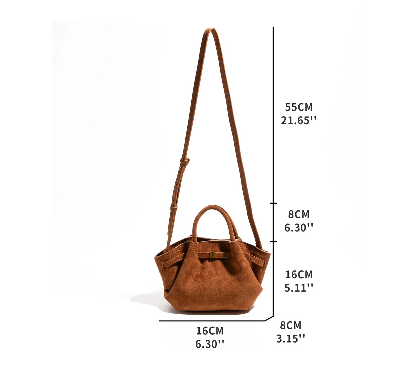 This luxurious bag exudes vintage charm with its classic design and faux suede material. The perfect combination of style and functionality, this handbag is a versatile addition to any wardrobe.