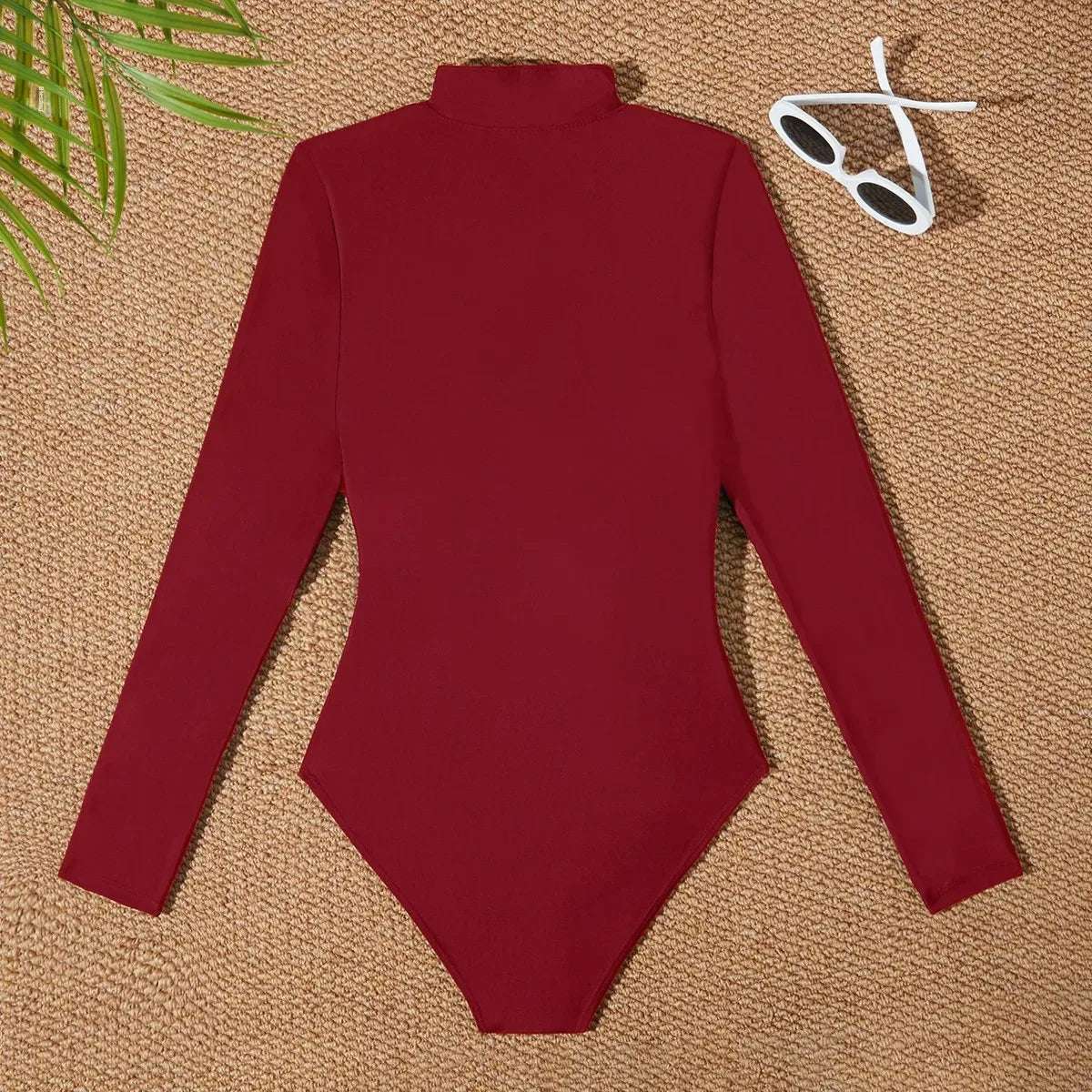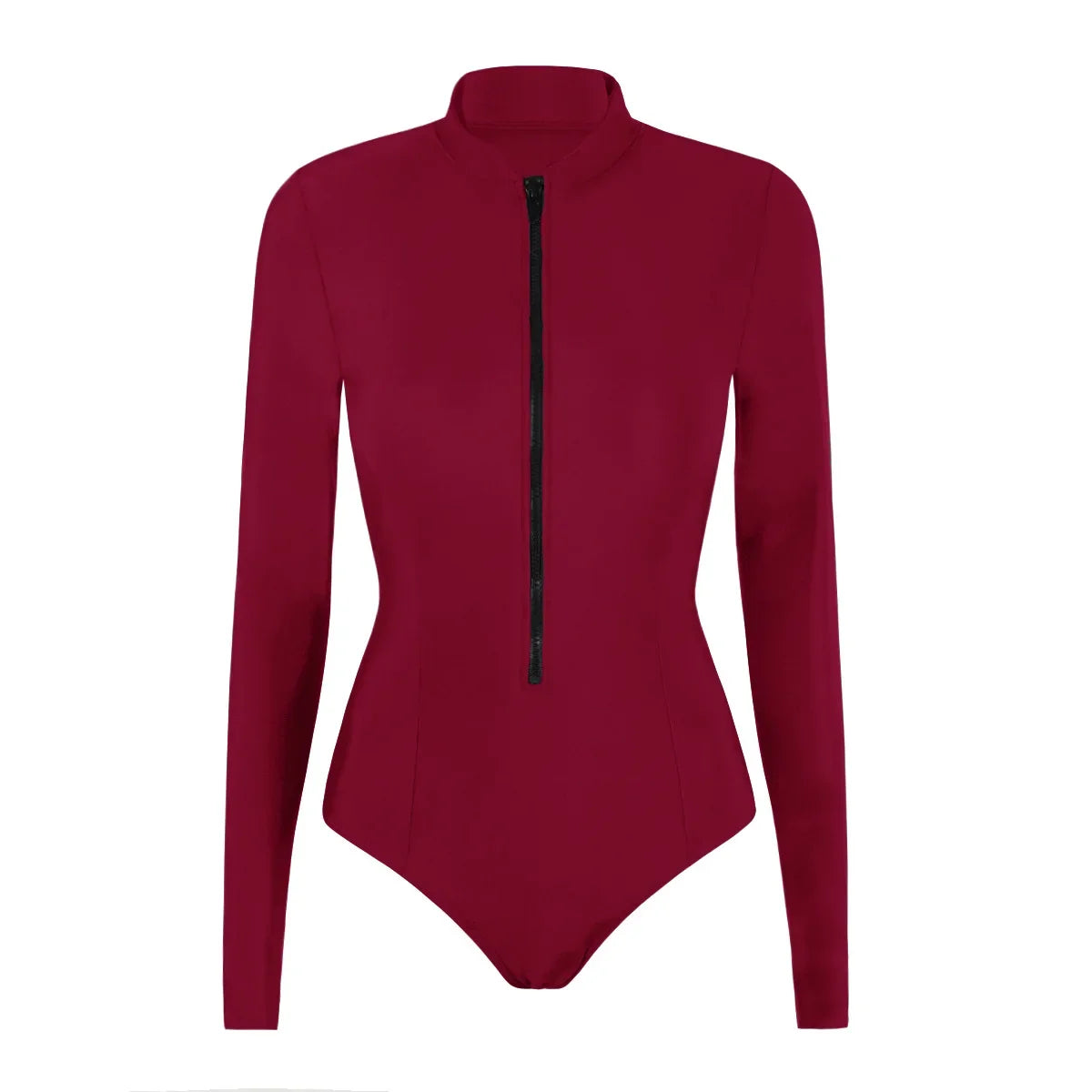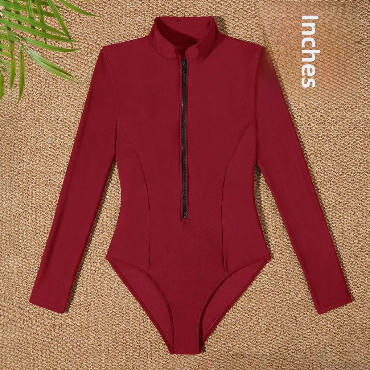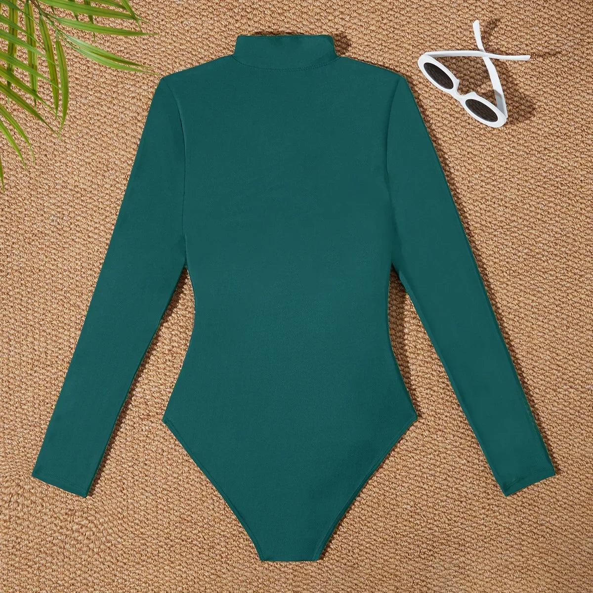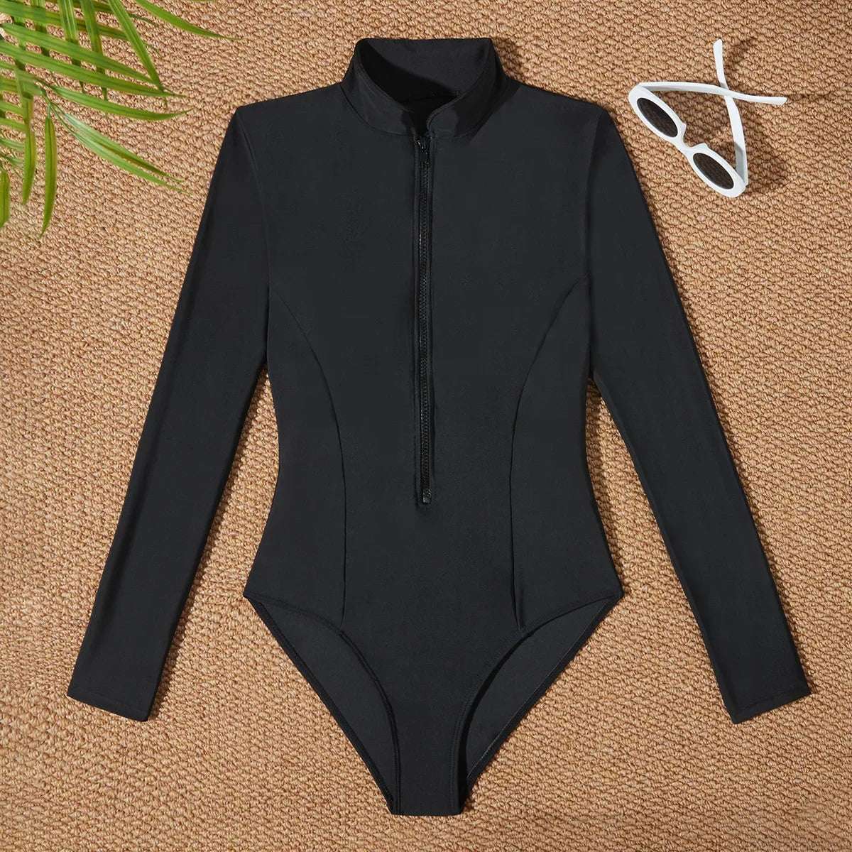 High Neck Zipper Long Sleeve One Piece Surf Swimsuit