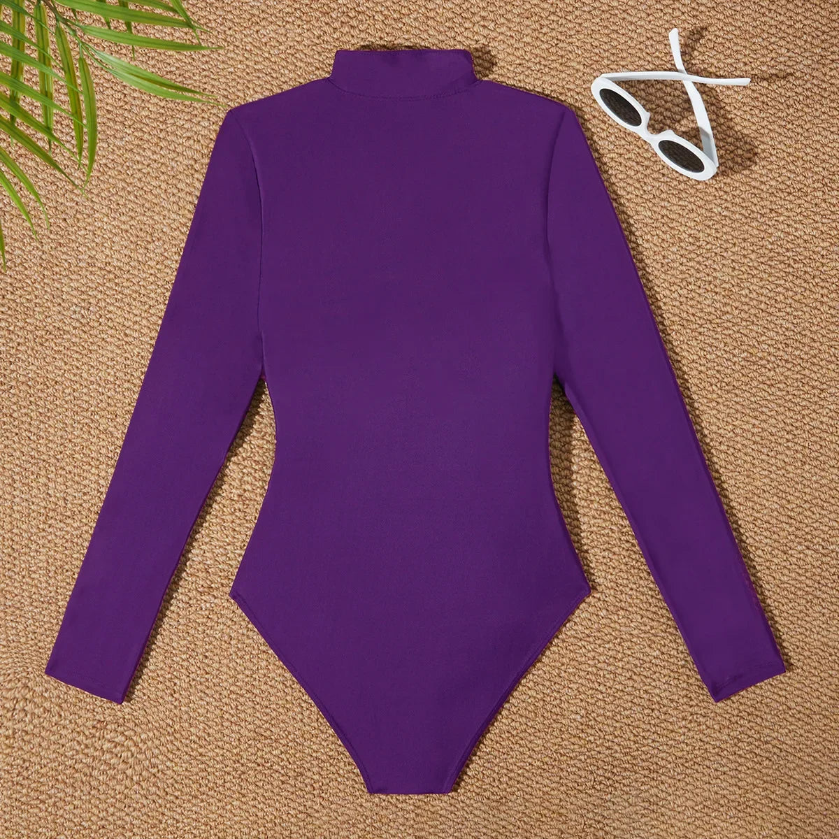 Stay stylish and protected in our High Neck Zipper One Piece Surf Swimsuit for women. With long sleeves and a convenient zipper, this suit is perfect for catching waves or lounging on the beach. Look cool and feel comfortable in this must-have swimsuit!
