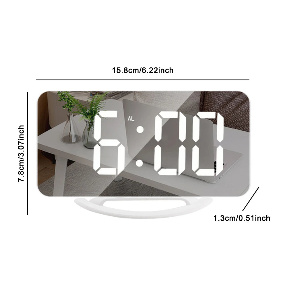 Keep time in style with this Digital 7" LED Mirror Electronic alarm Clock. Not only does it display the time with a sleek LED screen, but it also doubles as a mirror for those last-minute touch-ups. Wake up on time with the built-in alarm feature. Say goodbye to boring alarm clocks!