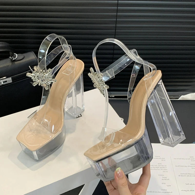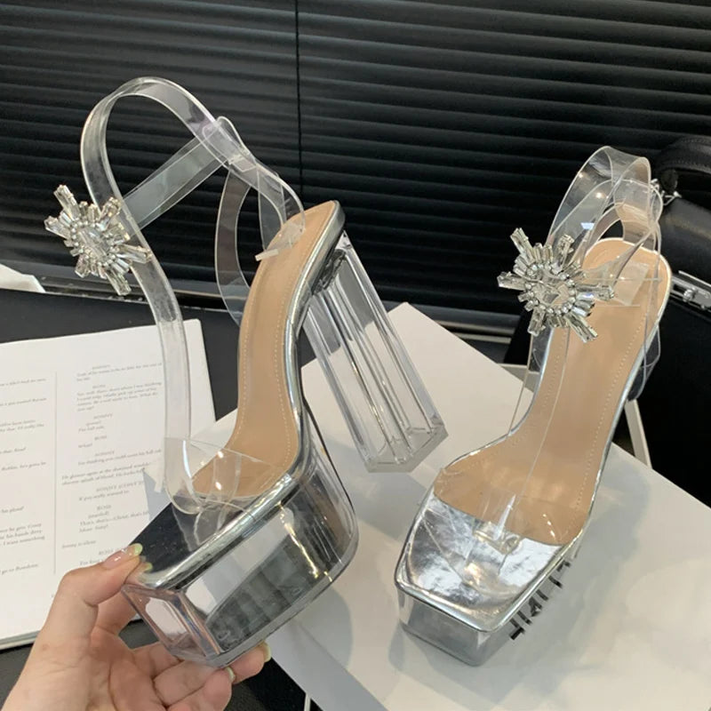 Crystal Buckle Ankle clear pvc Strap Platform Sandals