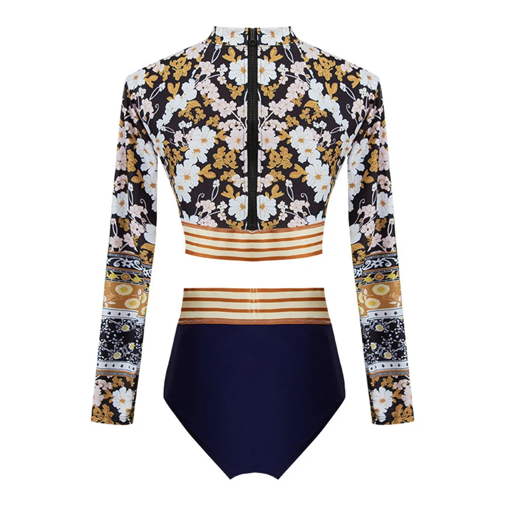 Designed as a rash guard, this swimsuit is perfect for those who love to surf or participate in other water sports. The long sleeves provide extra coverage and protection from the sun's harmful rays. It is also suitable for swimming, making it a versatile piece for any water activity.