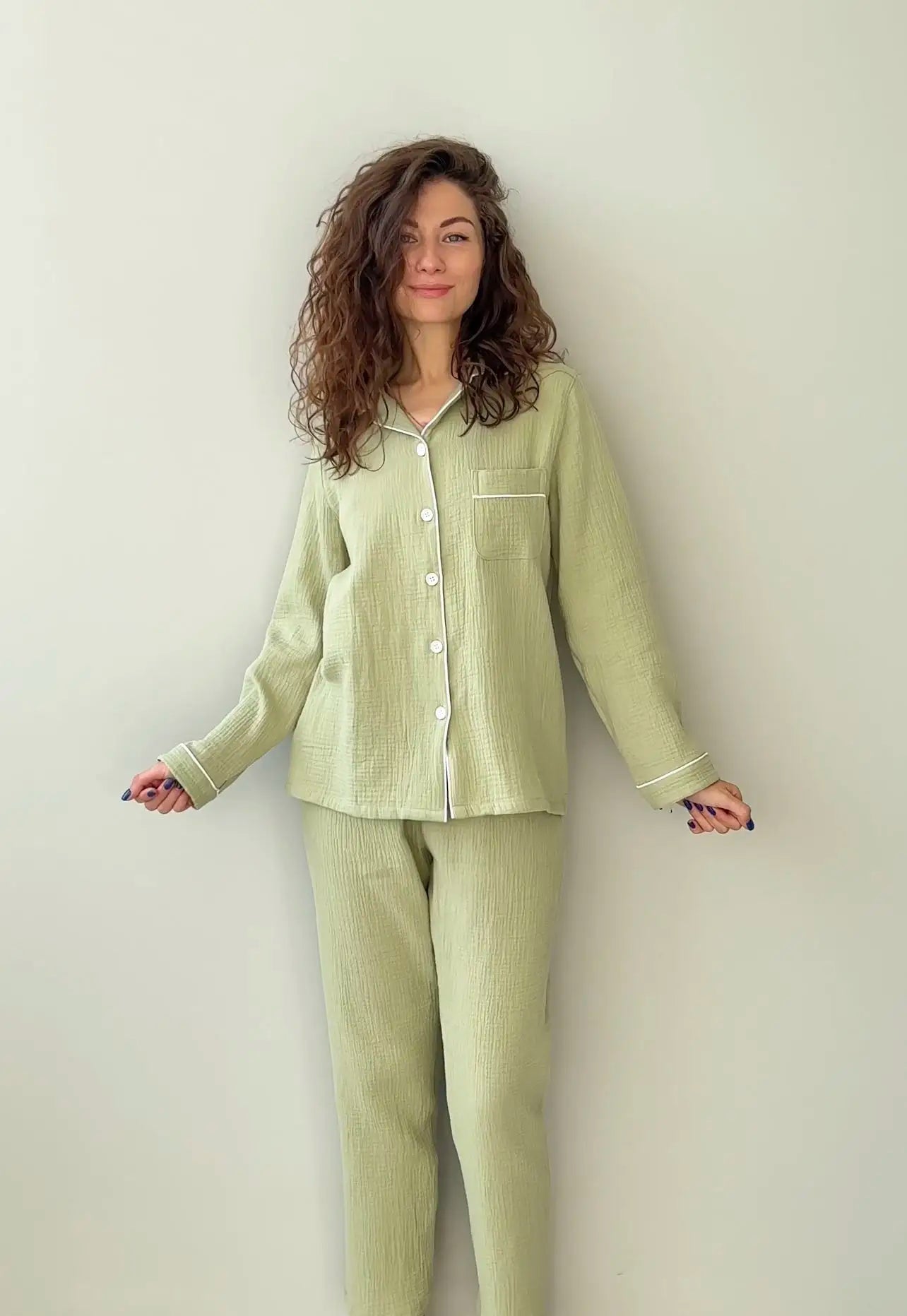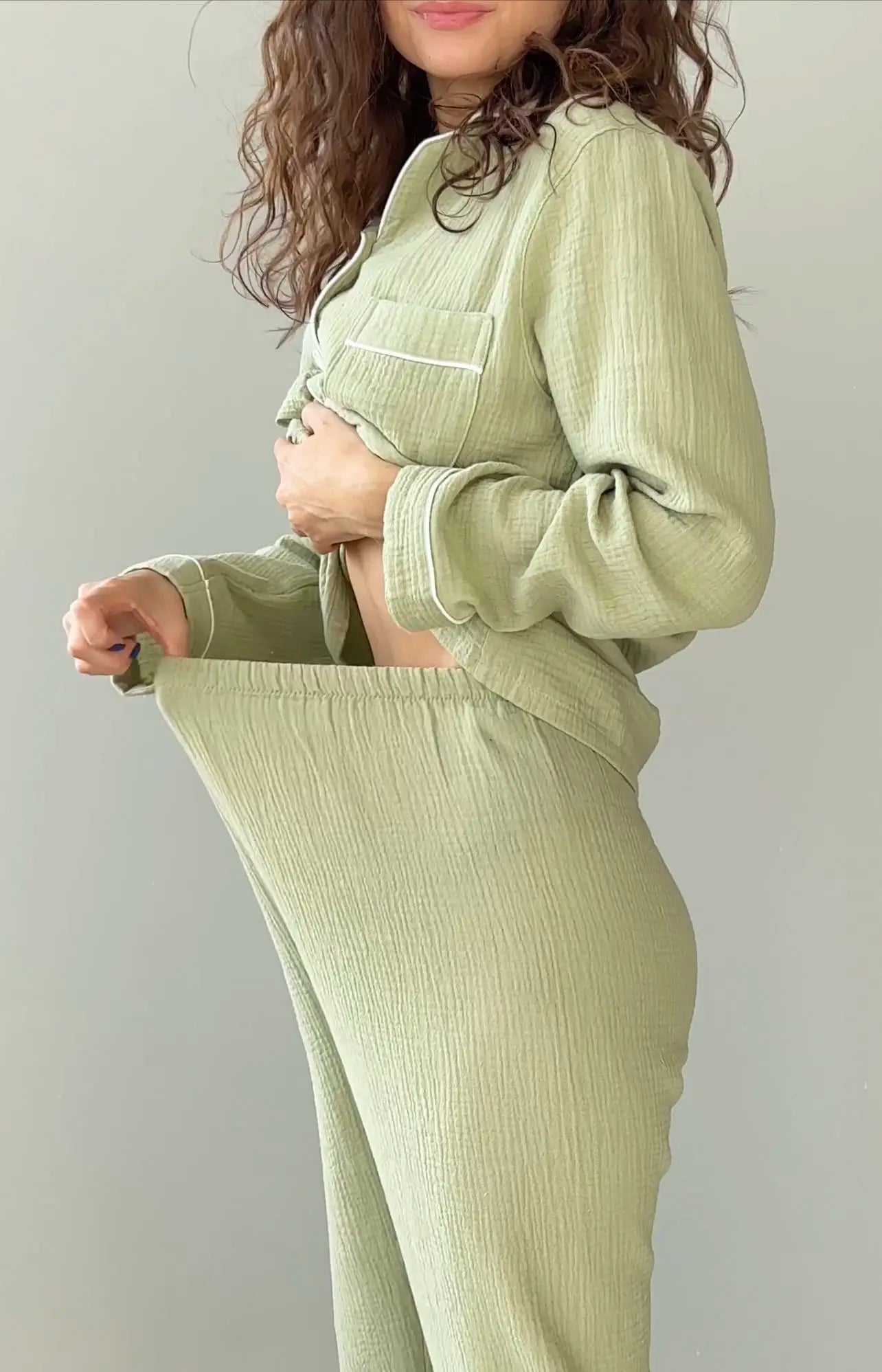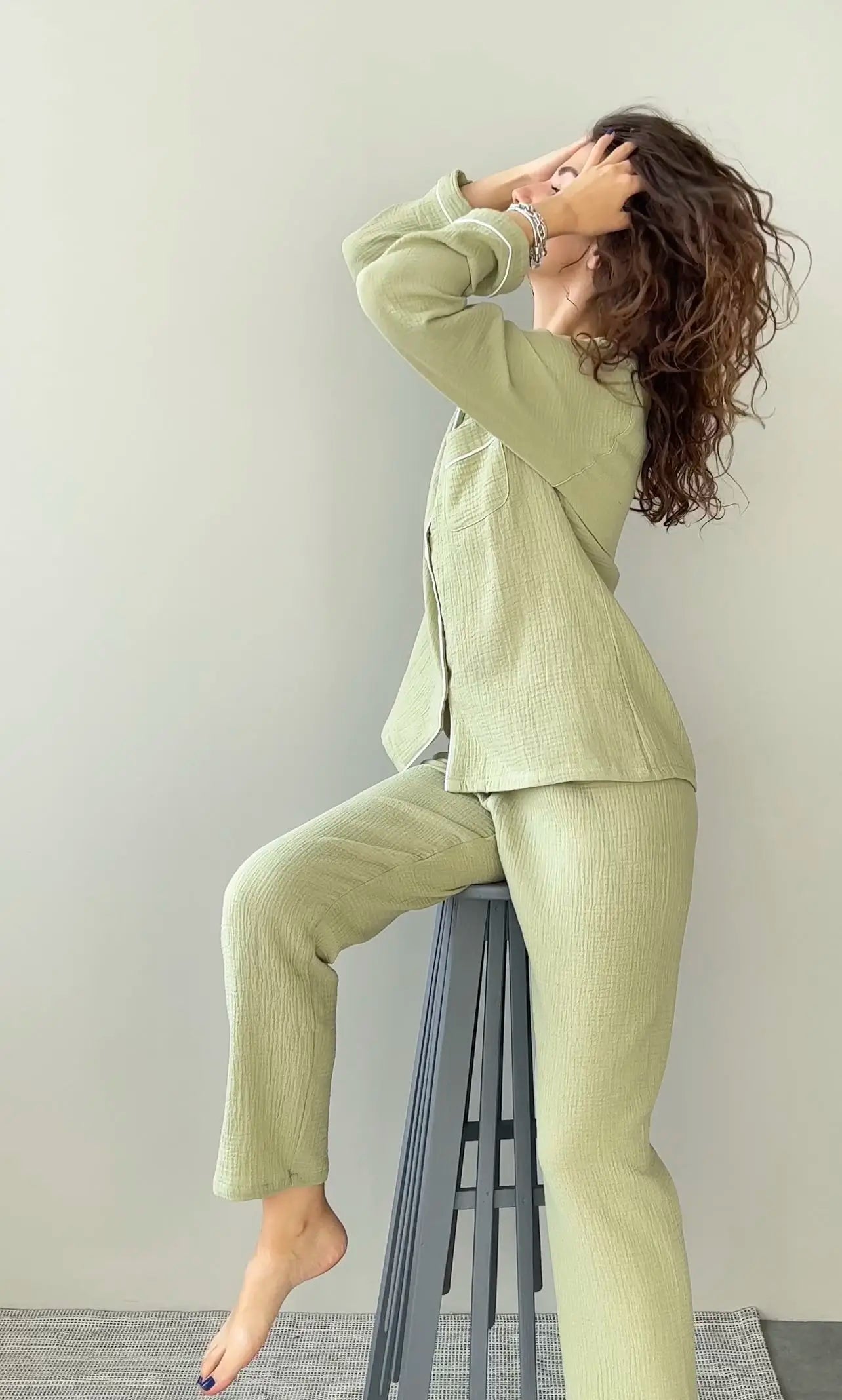 Cotton Crepe Long-Sleeve Simple pyjama lounge set
