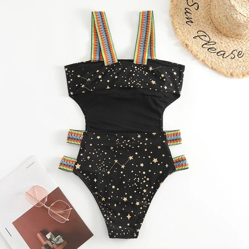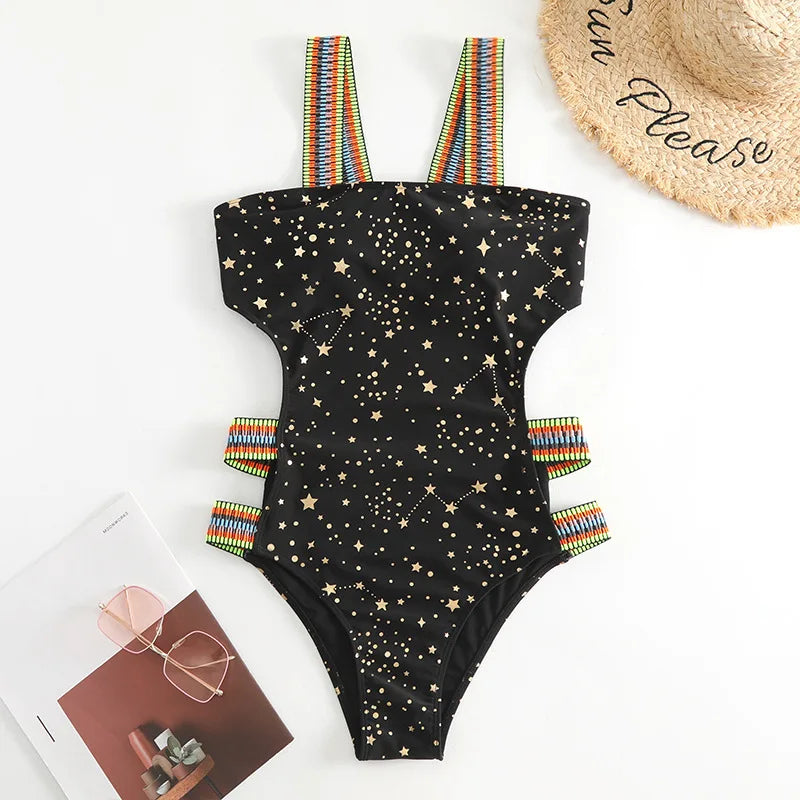 Get ready to turn heads at the beach or pool with our innovative One Piece Push Up Sexy Star Print Swimwear.
