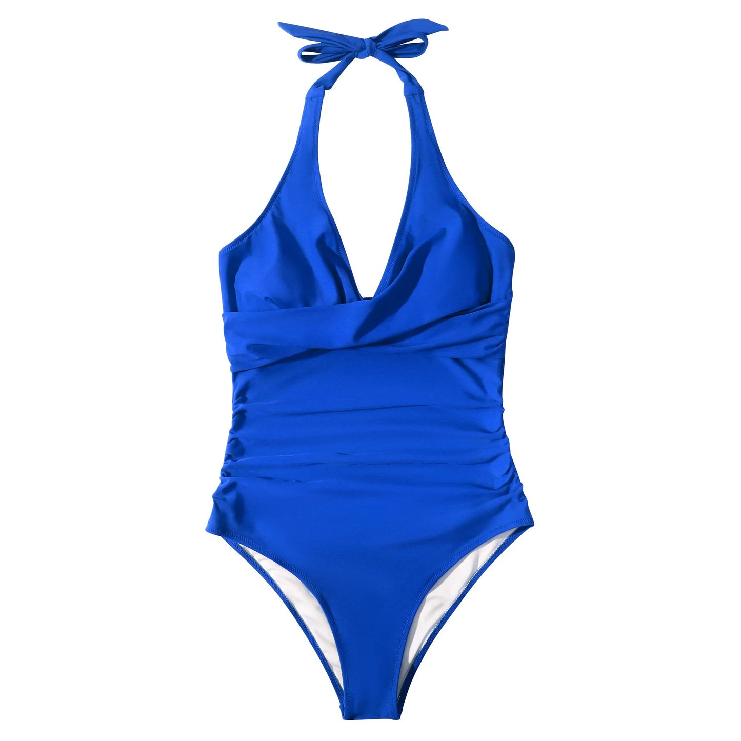 Be beach ready in this High Waist Halter tummy control Swimsuit that provides a flattering silhouette and maximum coverage. The halter neckline and ruching detail on the sides help to minimise your waist and midsection, delivering a secure fit for a more confident feel.