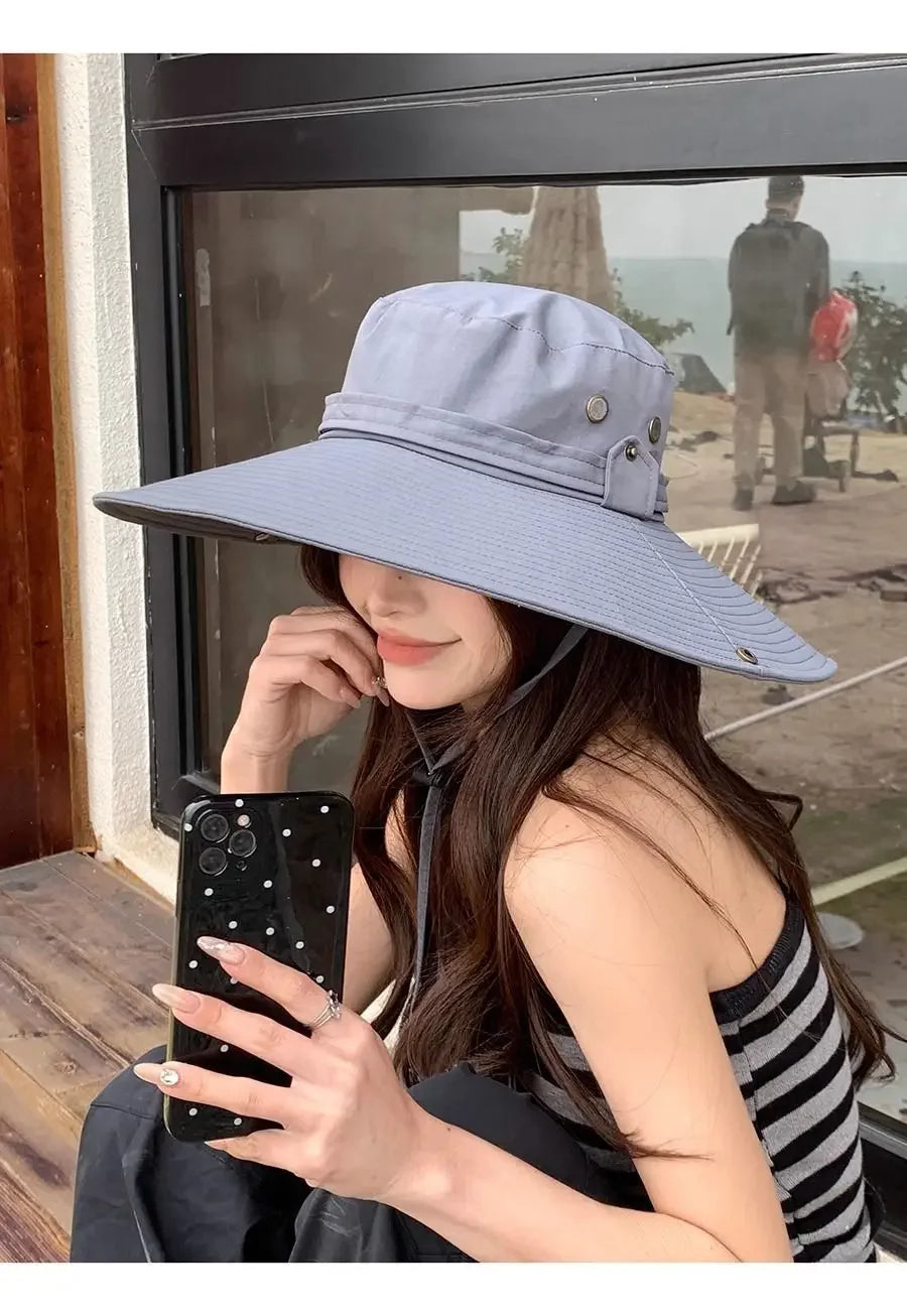 Stay stylish and protected from the sun with our Western Cowboy fabric sun protection drawstring hat for women. Made from high-quality materials, this hat is perfect for outdoor activities such as fishing, hiking, and mountain climbing.
