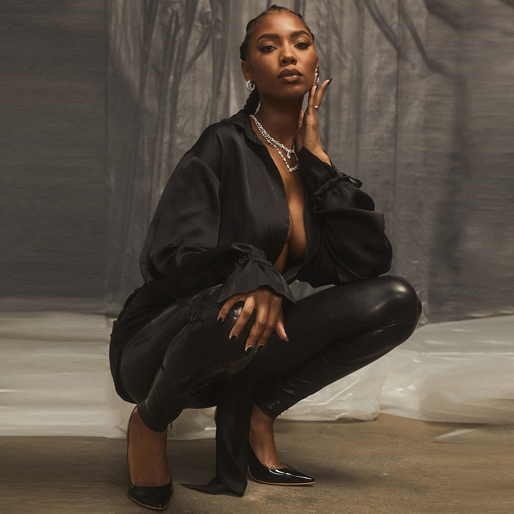 This versatile blouse can be dressed up or down, making it a must-have in your wardrobe. Pair it with a pencil skirt for a classic, professional look, or with jeans for a more casual vibe. The black color and plain pattern make it easy to mix and match with different bottoms and accessories.