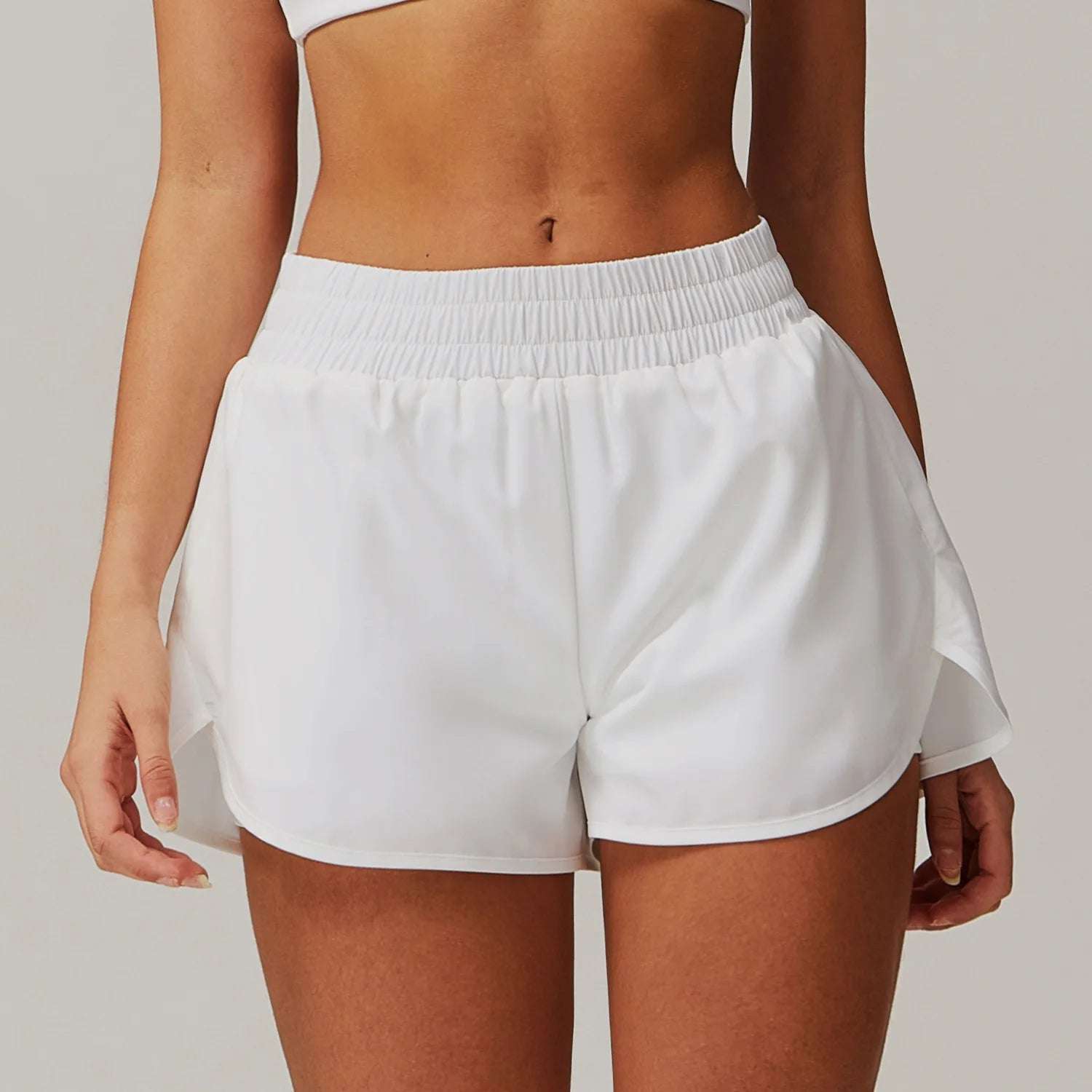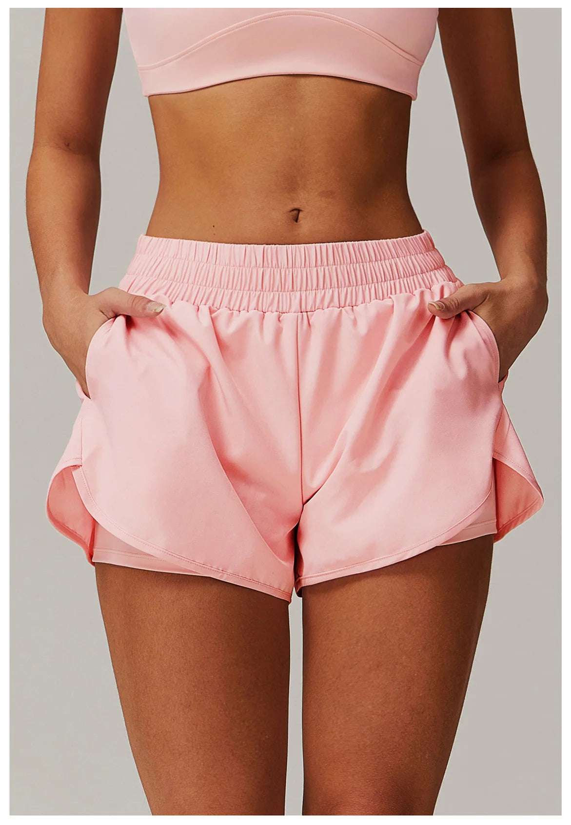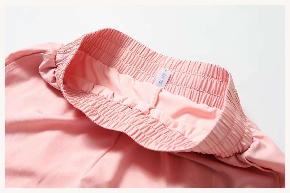These shorts are designed with a fake two-piece style, giving the appearance of a layered look without the added bulk. The elastic waistband provides a secure and comfortable fit, while the hip-lifting design enhances your figure.