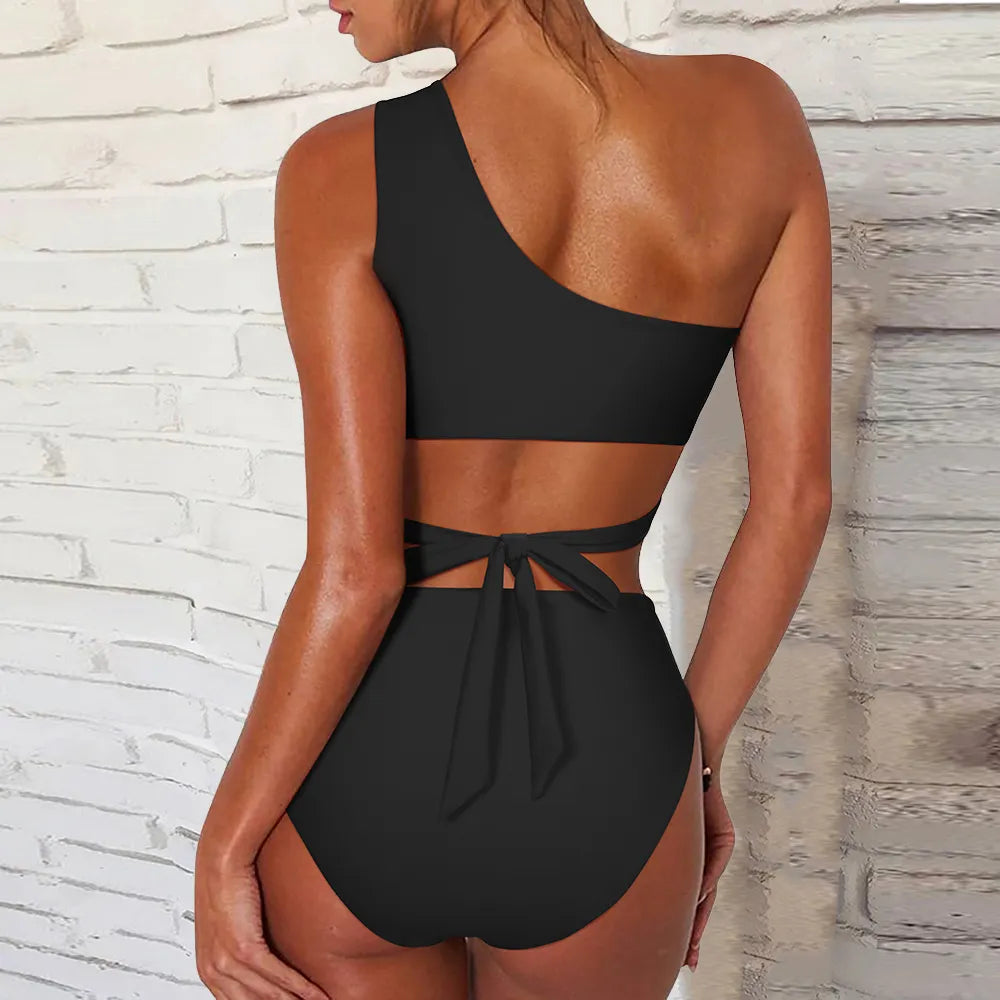 Whether you're lounging by the pool or hitting the beach, this bikini set is perfect for any summer occasion. Embrace your inner fashionista with this stylish and comfortable beachwear. Don't miss out on the 2023 new one-shoulder bikini trend and add this set to your collection today.