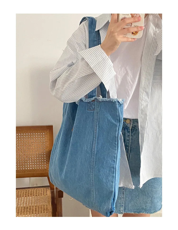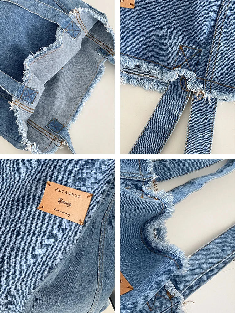 Introducing our latest innovation in fashion - the Rough Edge Denim Shoulder Bag. Made from high-quality denim material, this bag is not only stylish but also durable. Its unique rough edge design adds a touch of edginess to your outfit, making it the perfect accessory for any casual or streetwear look.