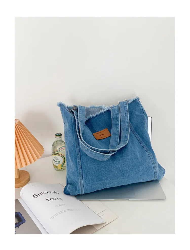 The bag features a spacious main compartment, perfect for carrying all your essentials. The denim material is washer-wrinkle resistant, ensuring that your bag stays looking new and fresh even after multiple uses. The large capacity of this bag makes it ideal for shopping, school, or as a book tote.
