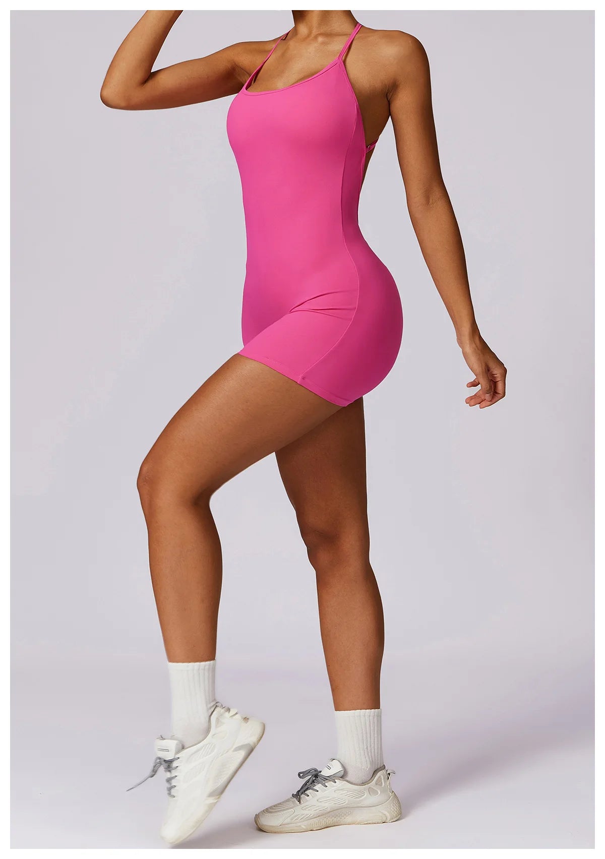 Upgrade your workout wardrobe with this stylish and functional Scrunch Butt Romper Backless Set from IMKOLOR.