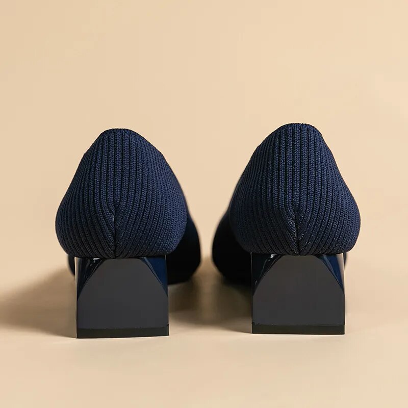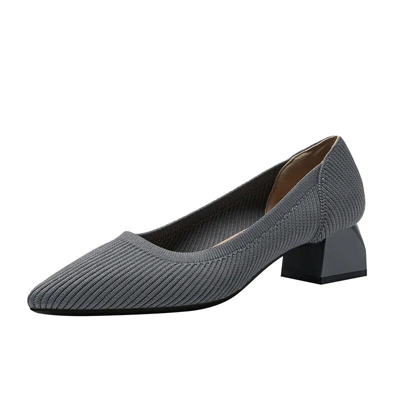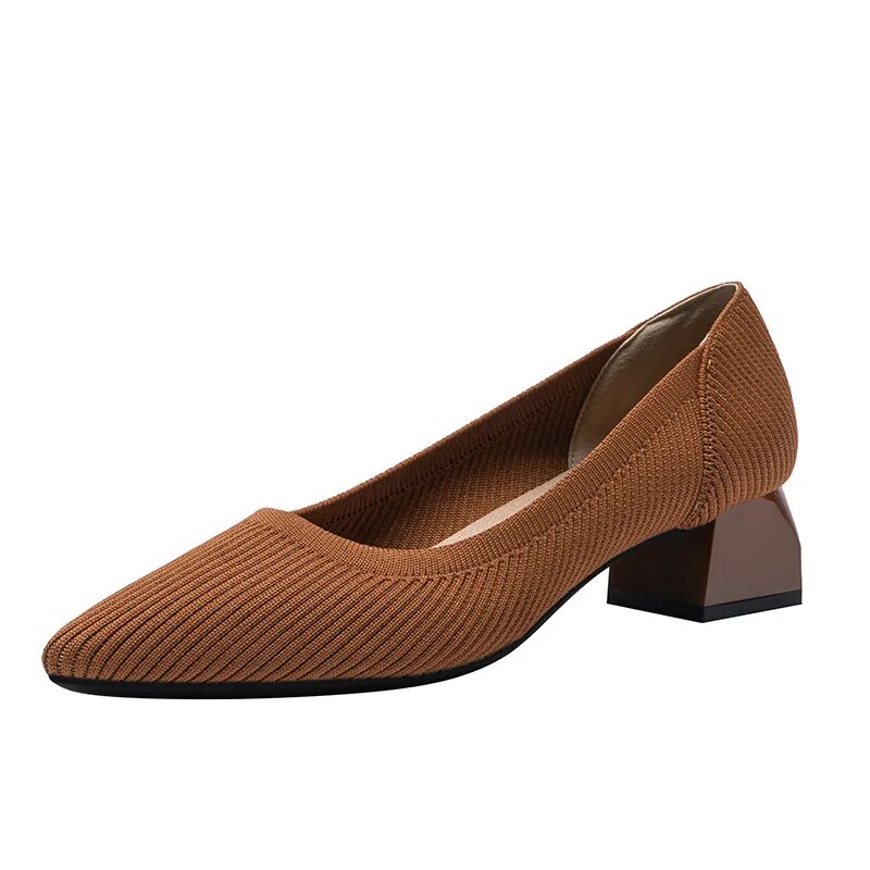 The heel height is between 3cm-5cm, giving you a flattering and elegant look. These shoes are designed with fashion in mind, making them the perfect addition to any outfit. The solid color and knitted design add a touch of sophistication, while the breathable rubber and non-slip sole ensure your comfort and safety. The latex insole provides extra cushioning for your feet, making these shoes ideal for long days at work or special occasions.
