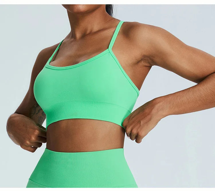 Upgrade your workout gear with the Seamless Cross Back Straps Sexy Fitness Bra.