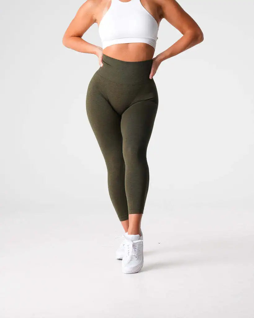 The seamless design ensures a smooth and flattering look, while the quick-dry fabric keeps you feeling fresh and dry during even the most intense workouts. With a high waist and elastic waistband, these leggings provide a secure and supportive fit.