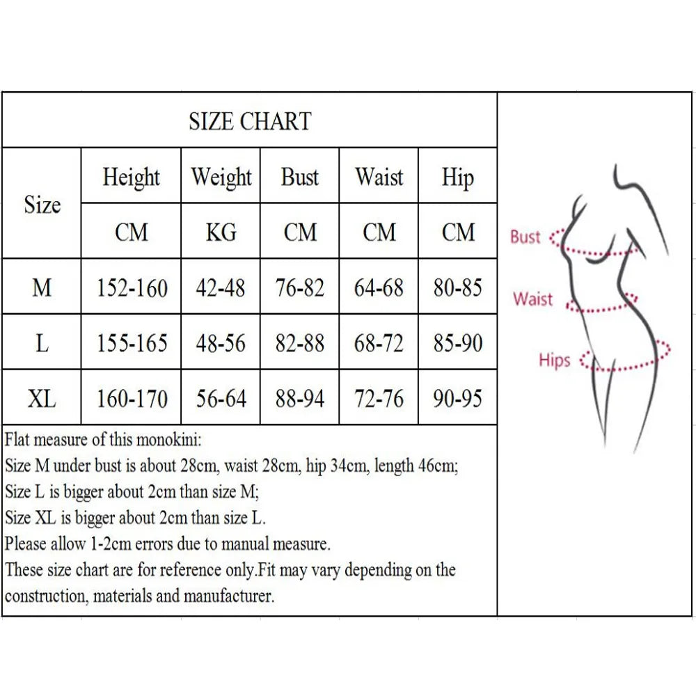 This one piece swimsuit features a bandeau style top with a push-up design to enhance your bust and a bow detail for a feminine touch. The monokini style provides coverage while still showing off your figure. Available in sizes M, L, and XL, this swimsuit is perfect for all body types.
