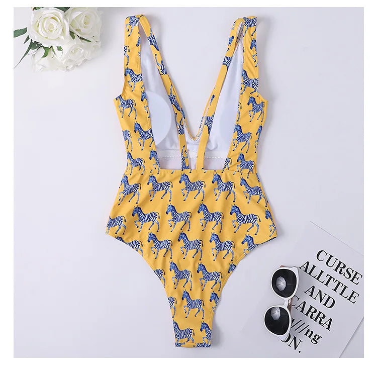 Sexy Vintage Zebra Print One Piece Swimsuit