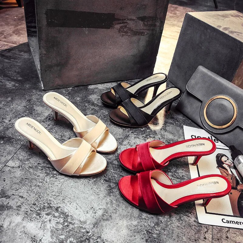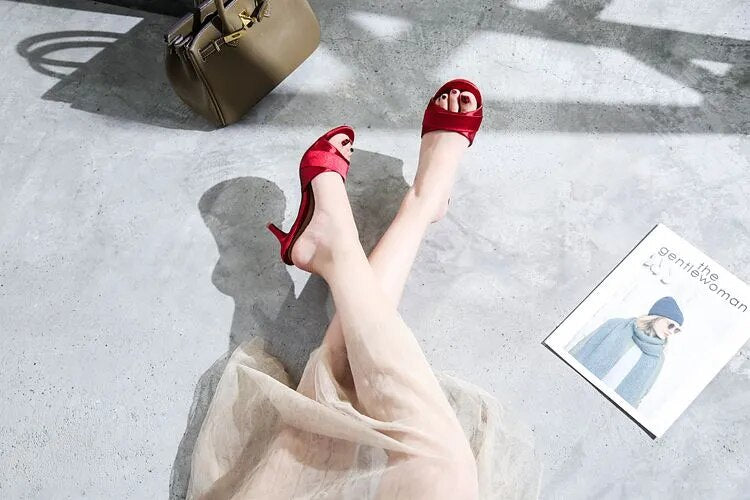Available in sizes 34-40, these sandals are suitable for a range of foot sizes. Don't miss out on the chance to add these High-heeled Satin Open toe sandals to your collection. Shop now and elevate your style game!