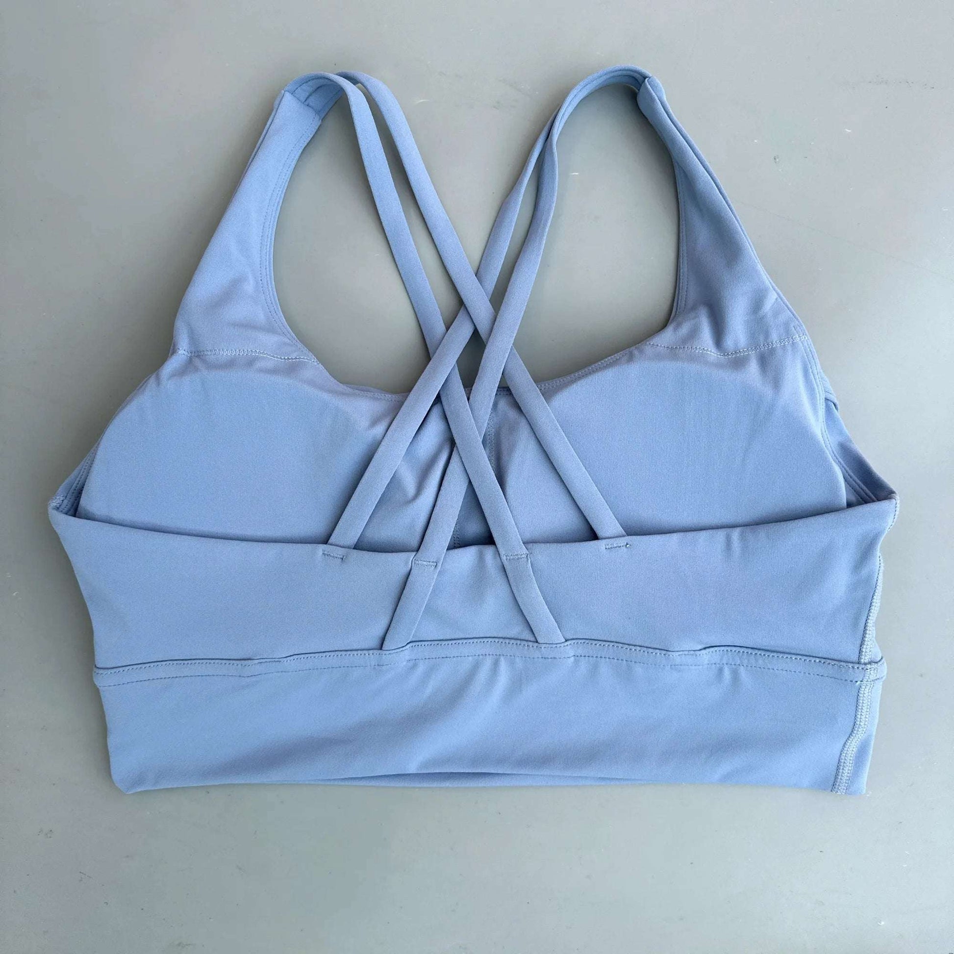 The unique cross back design not only adds a stylish touch but also offers extra support and prevents the straps from slipping during your workouts. The bra also comes with a chest pad for added comfort and a push-up effect, giving you a flattering silhouette.