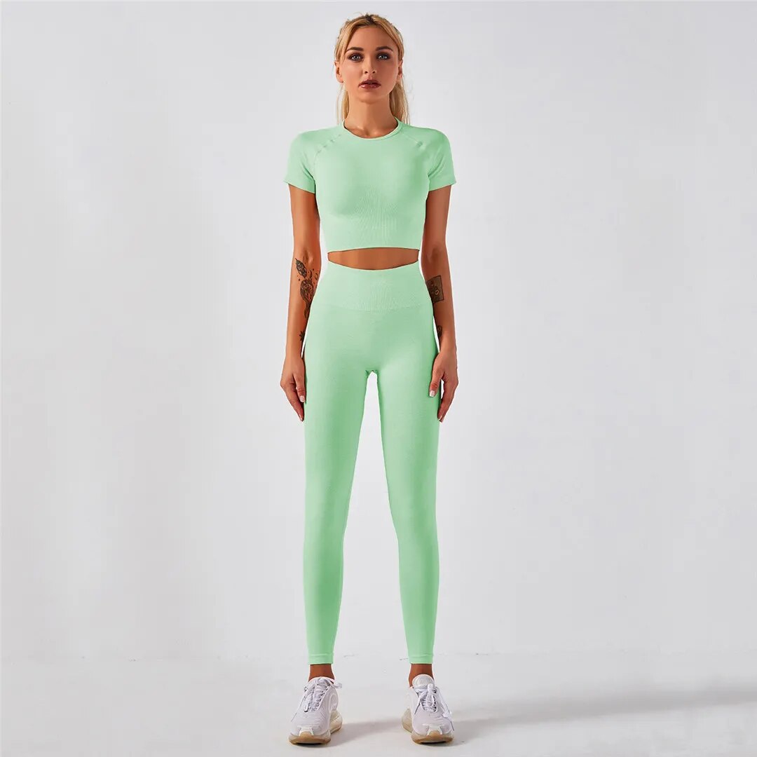 This Gym Quick Dry Yoga Wear Fitness Set is perfect for yoga, running, and any other exercise. It's made from quick-dry fabric, keeping you dry and comfortable while you exercise. This set features a two-piece design with a tank and leggings for full coverage. The soft and lightweight fabric ensures maximum breathability, allowing you to stay cool and dry as you work out.