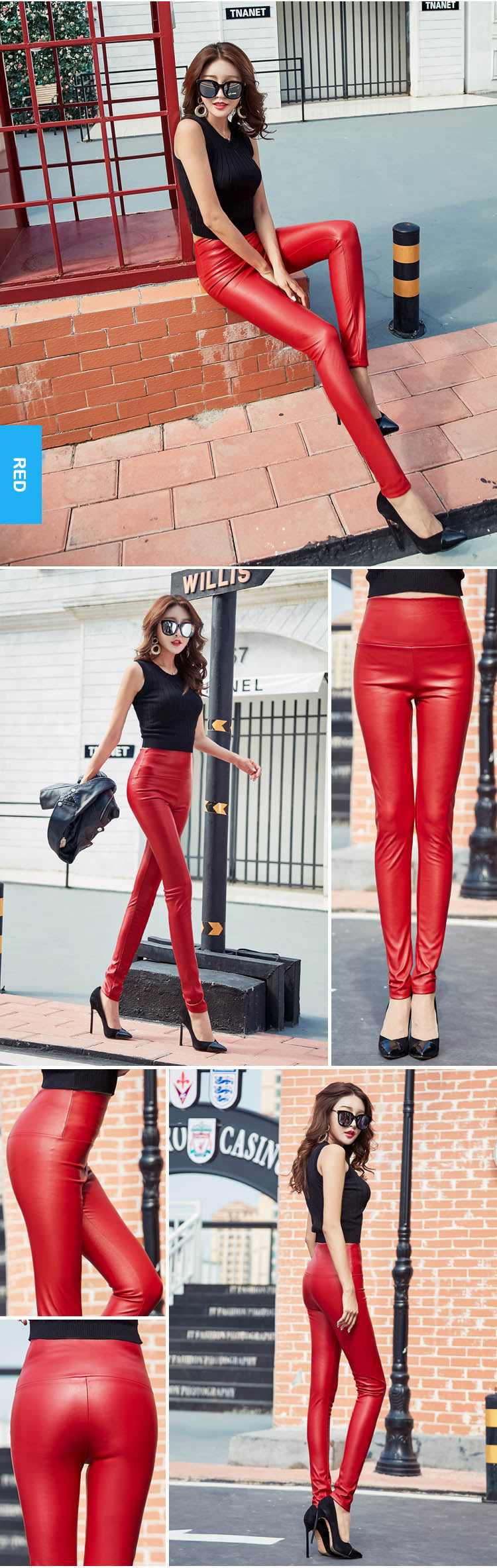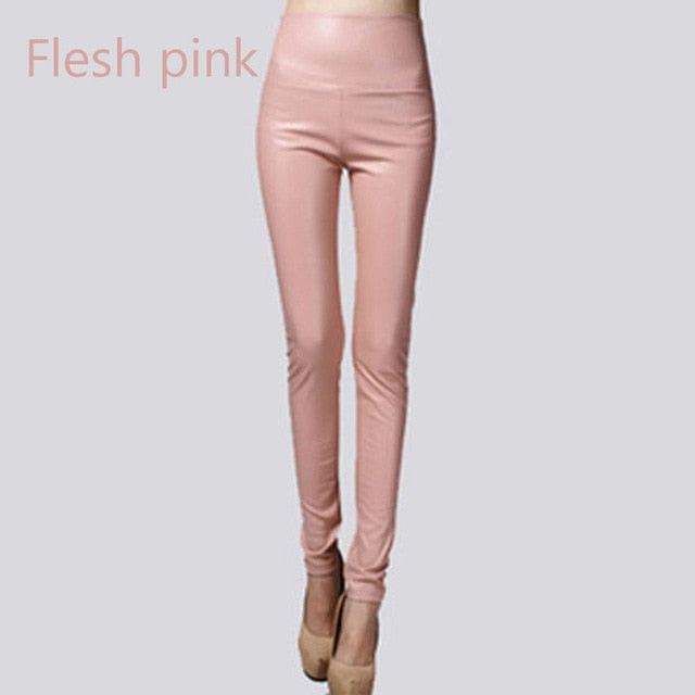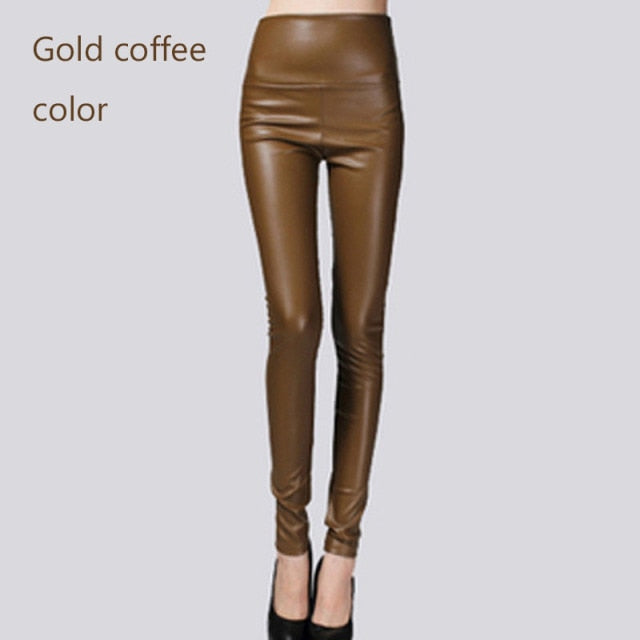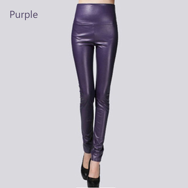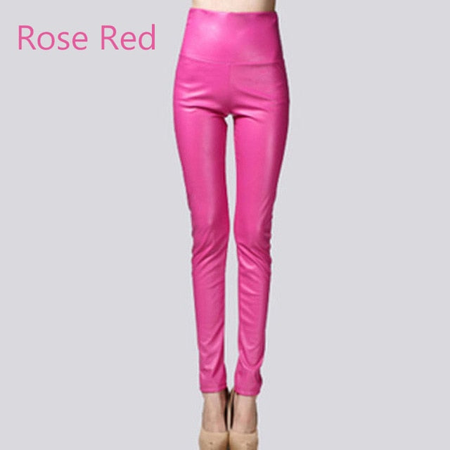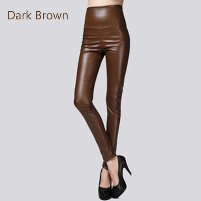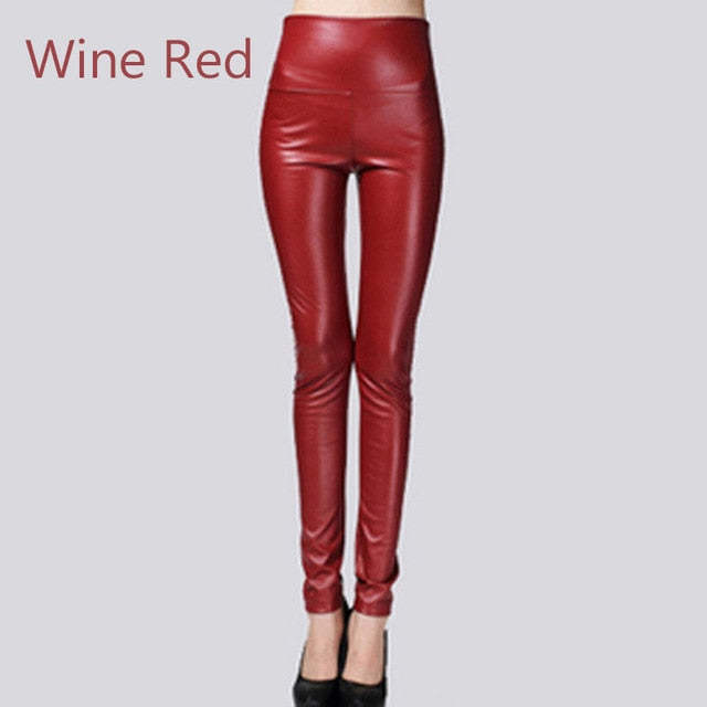 Wear the Faux Leather Skinny Trousers with any top to create a fashionable outfit. These trousers have a stretchy waistband and a slim, flattering fit. The faux leather is a trendy, chic fabric that will last for years.
