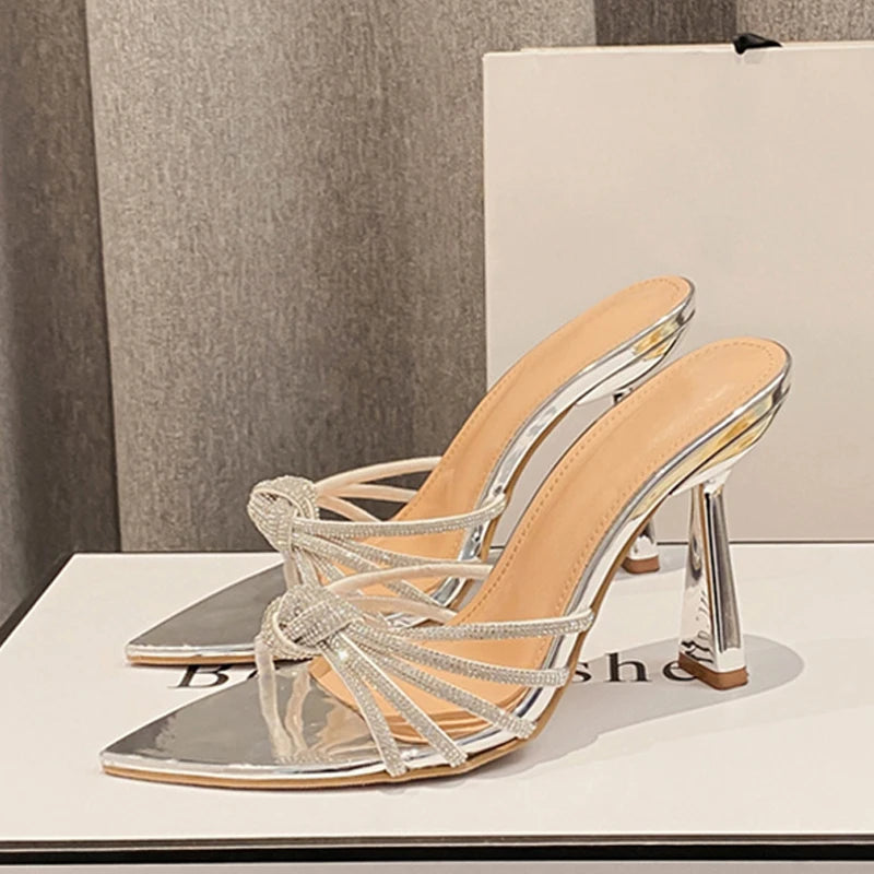 Summer Fashion Crystal Narrow Band Pointed Toe Slides