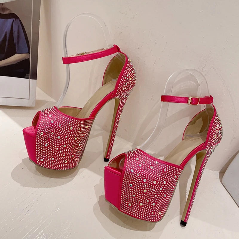 Fashion Crystal Rhinestone Platform pink high heel shoes