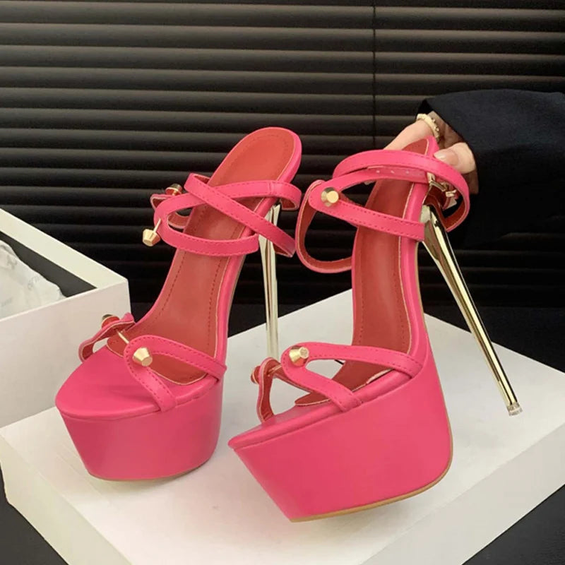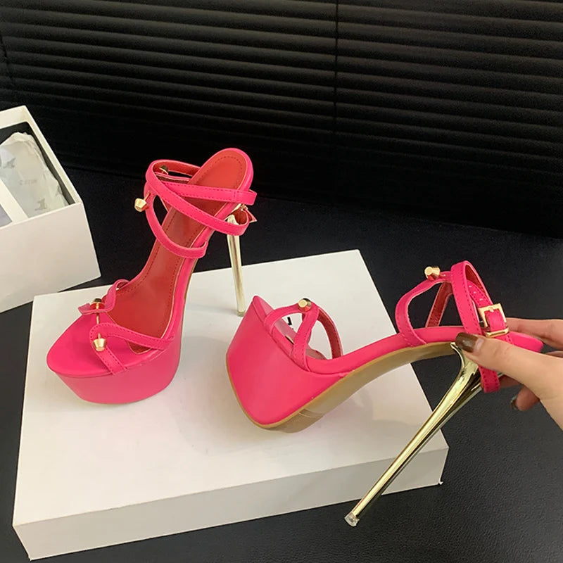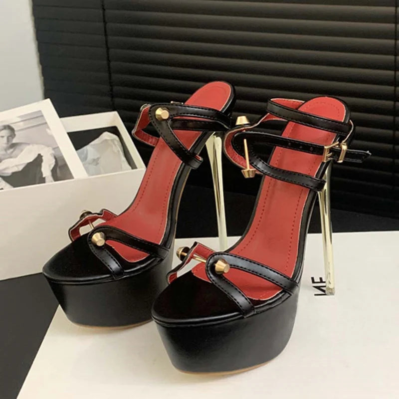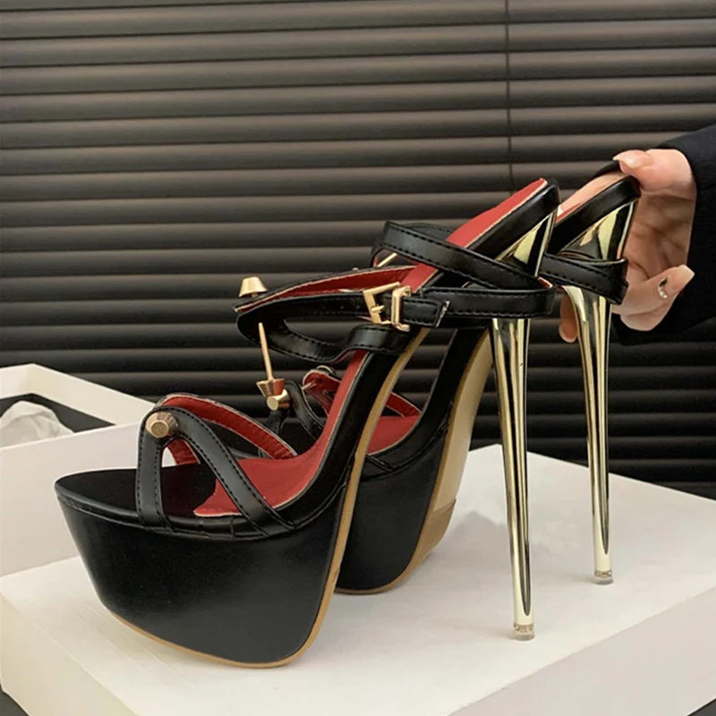 Metal detail Fashion Platform golden high heel Sandals