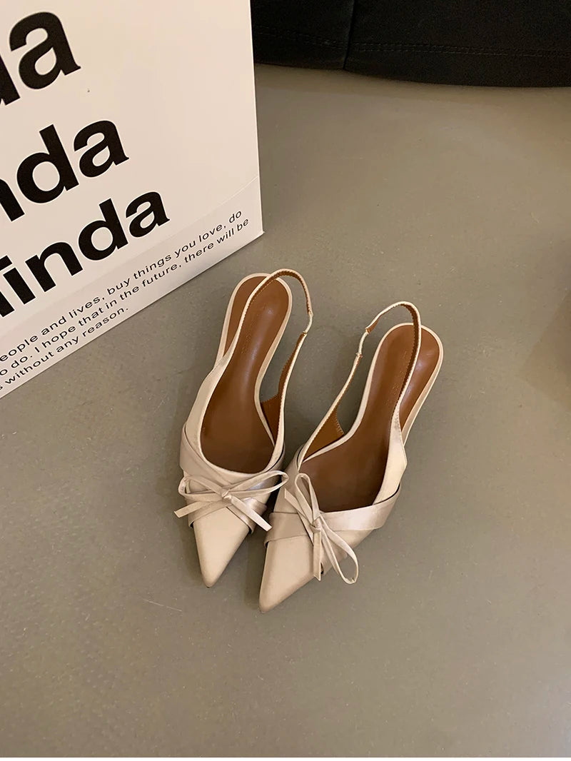 Introducing the latest addition to our collection - the Pointed Toe Butterfly-Knot Women's Kitten Heels Shoes.