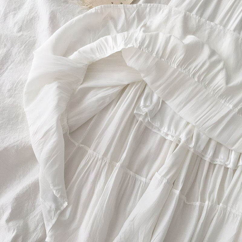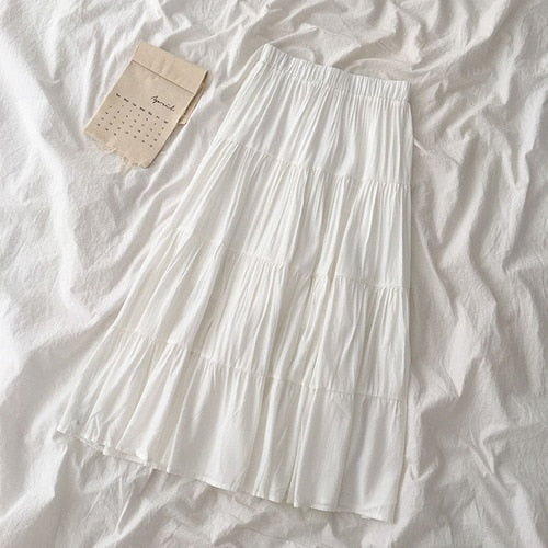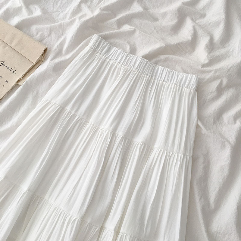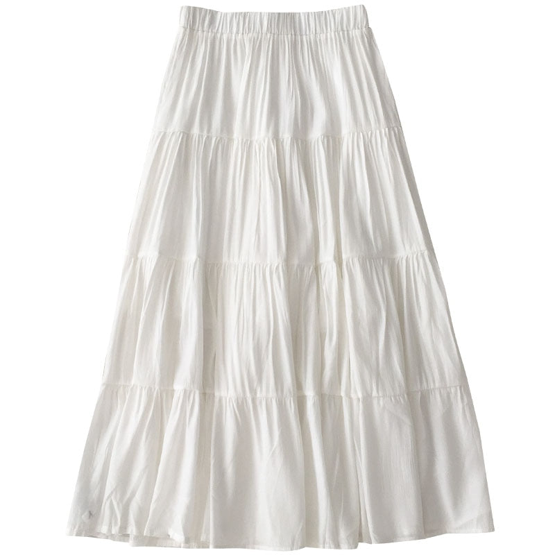 This light-weight, flowing maxi skirt is perfect for any warm-weather occasion. It features a ruffled elastic waistband and a wide, crinkled hemline. It is made of a lightweight and comfortable fabric that will keep you cool and comfortable.