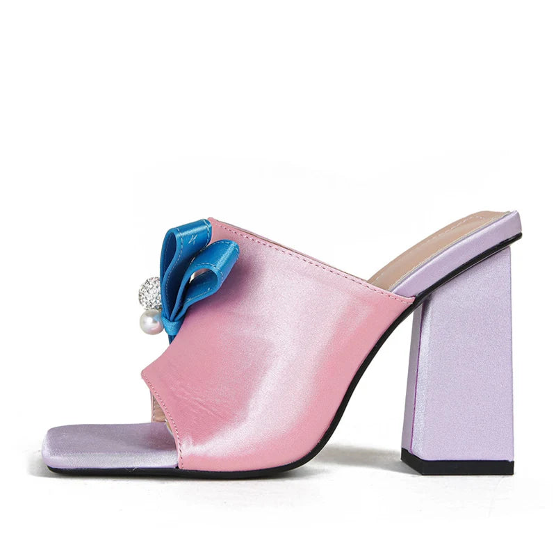 The square heel (8cm-up) adds a touch of sophistication, while the fashion element of a butterfly-knot adds a playful and feminine touch. These sandals are available in a variety of mixed colors, making it easy to match with any outfit.