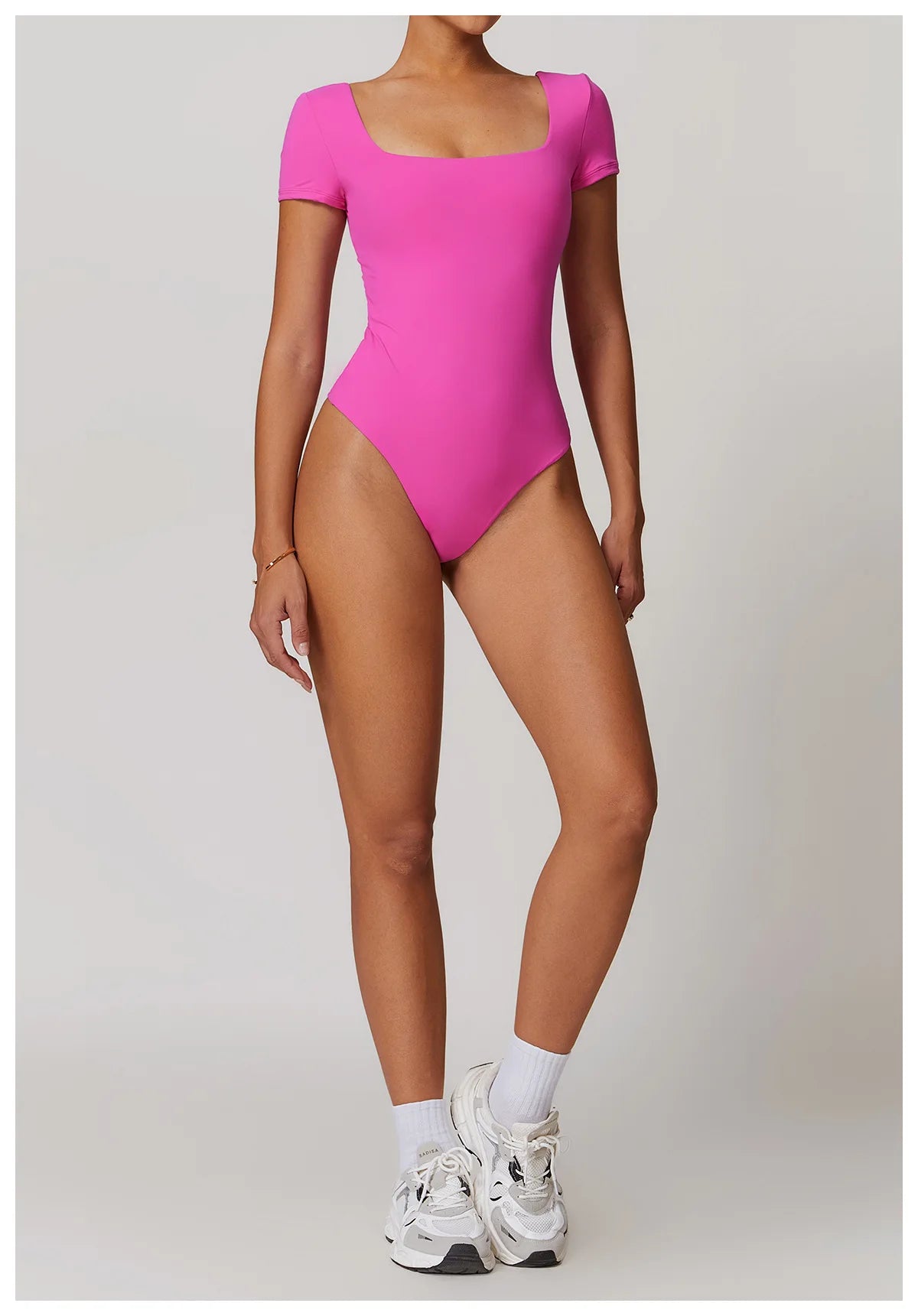 The square neck design adds a touch of elegance, while the short sleeves offer just the right amount of coverage. This bodysuit is perfect for any fitness enthusiast looking for a stylish and functional outfit.