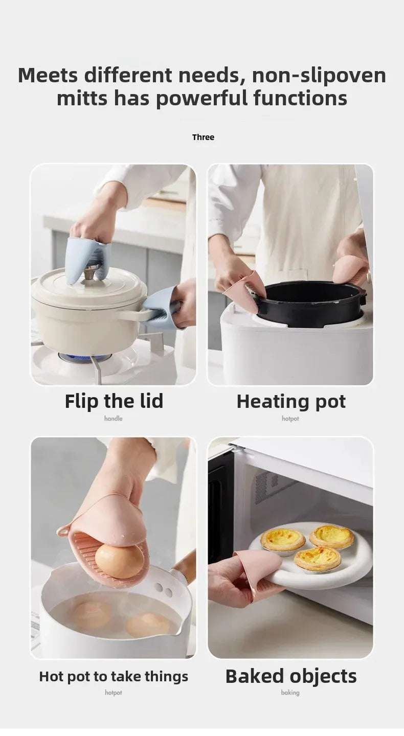 These heat resistant silicone gloves are a must-have for any kitchen. Made from high-quality silicone material, these gloves provide practical protection against scalding and injuries while cooking, baking, grilling, or using the microwave oven. The thickened design ensures maximum heat resistance, making them perfect for handling hot pots, pans, and dishes.
