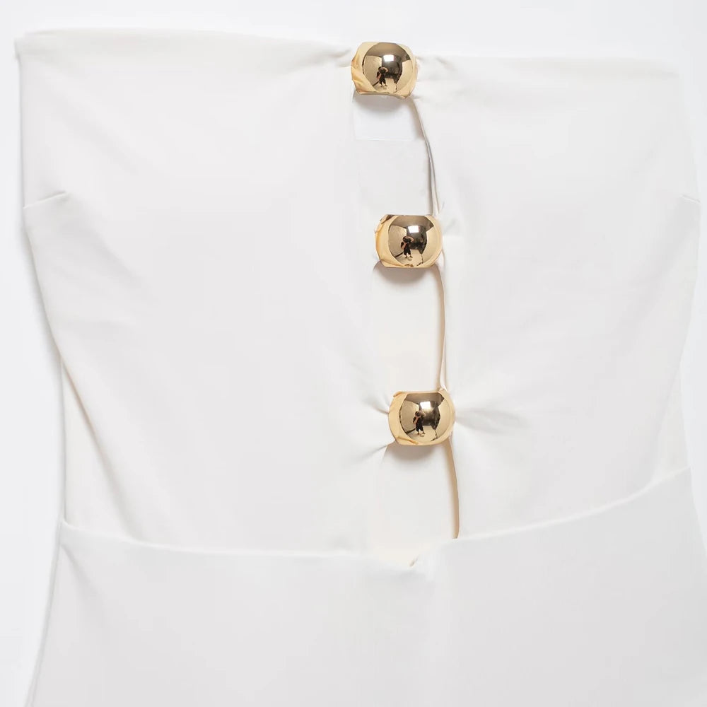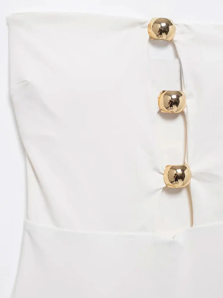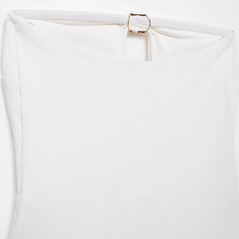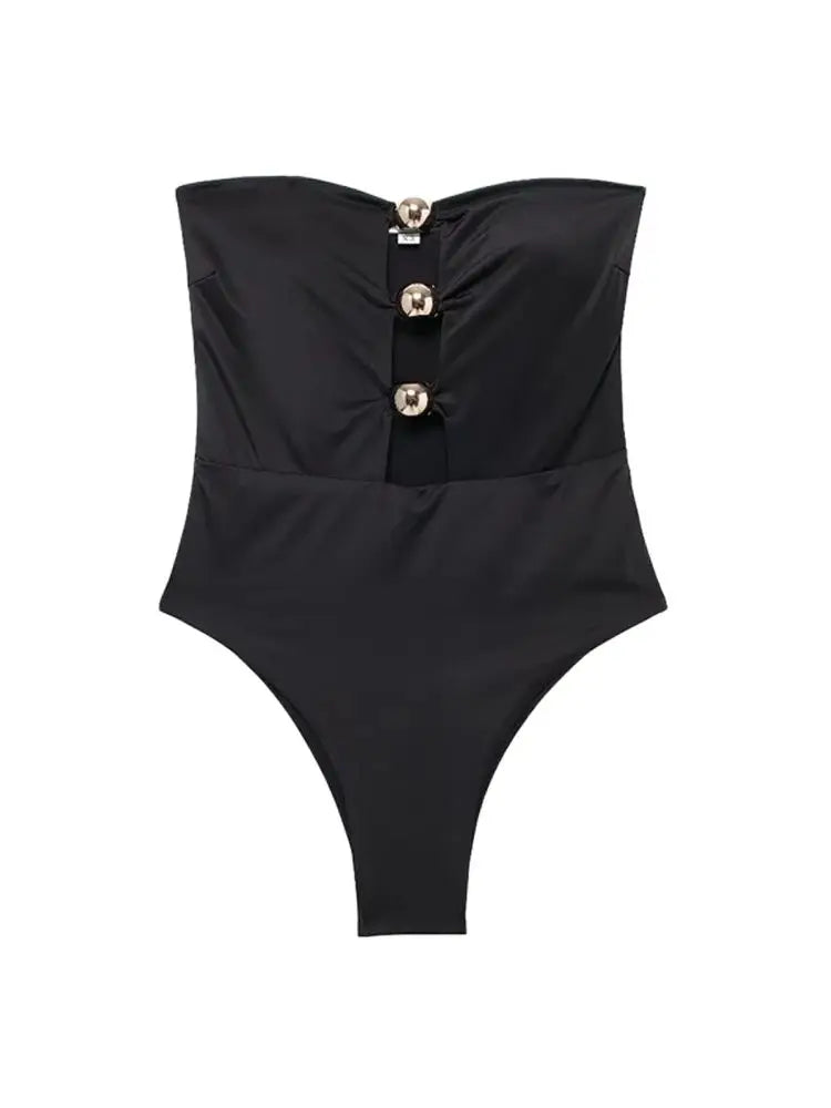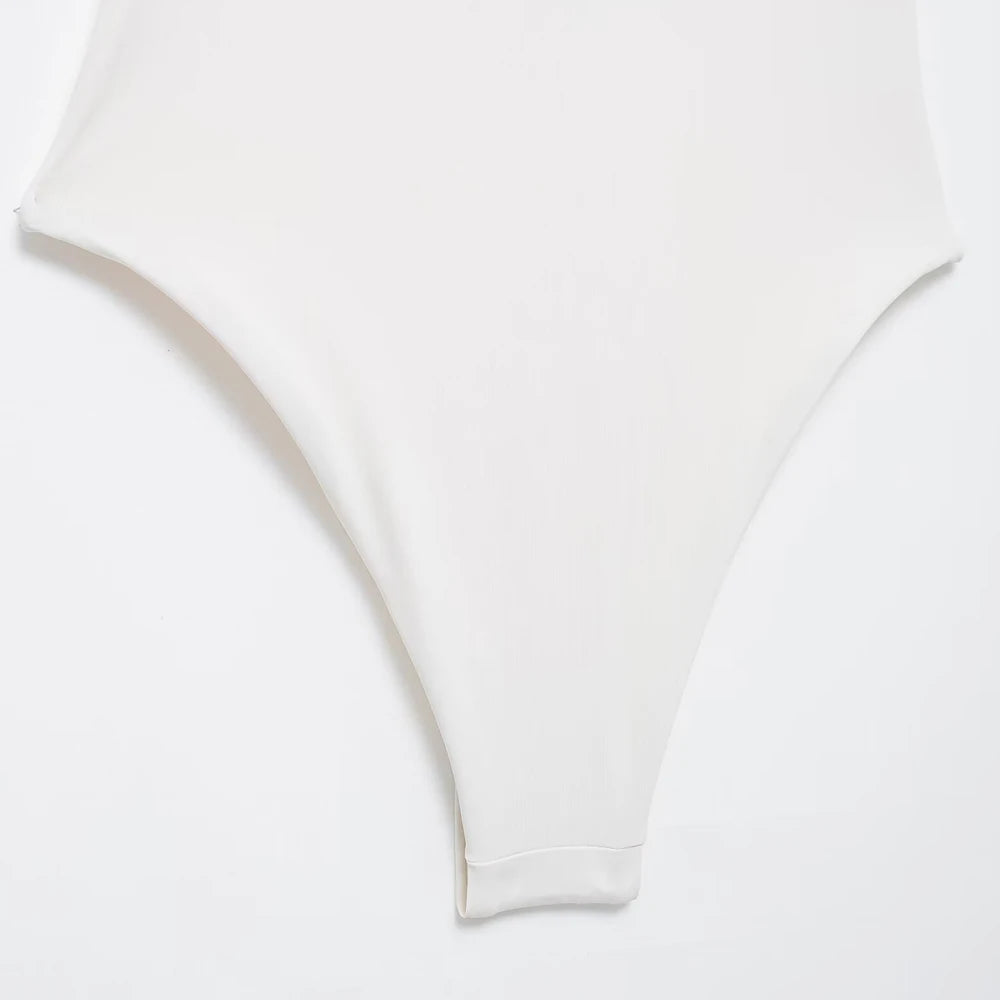 The unique hollow out design, featuring metal beads, adds a touch of edginess to your outfit. The straight neckline and skinny fit create a flattering silhouette, making you feel confident and sexy.