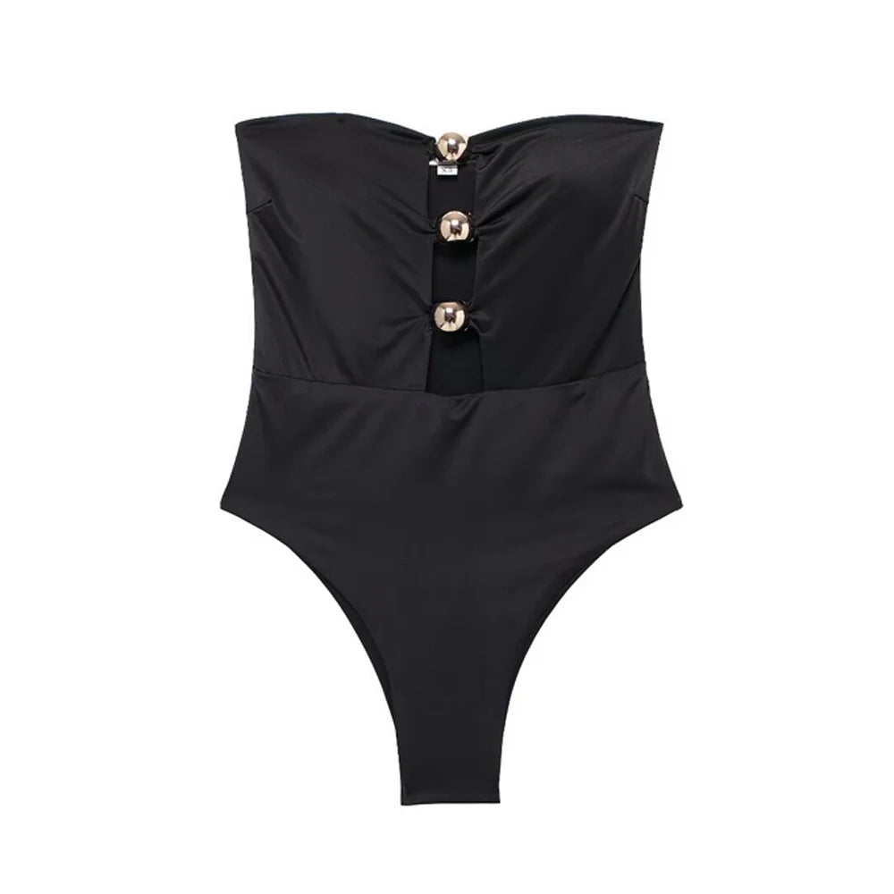 Perfect for a night out or a special occasion, these bodysuits are a must-have in every fashion-forward woman's wardrobe. Don't miss out on this innovative and stylish piece - get your Metal Bead Hollow Out Bodysuit now!