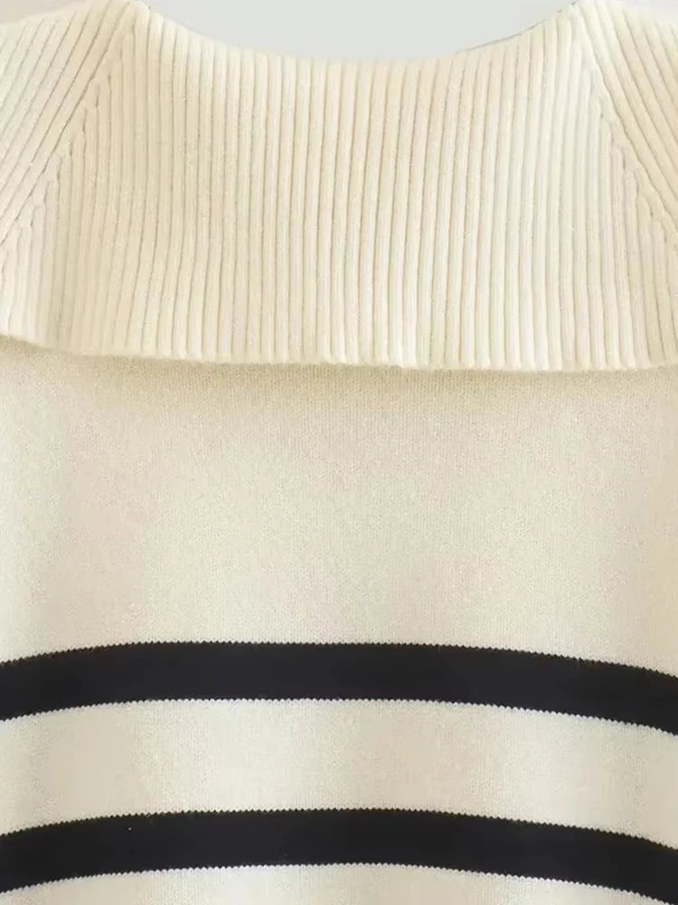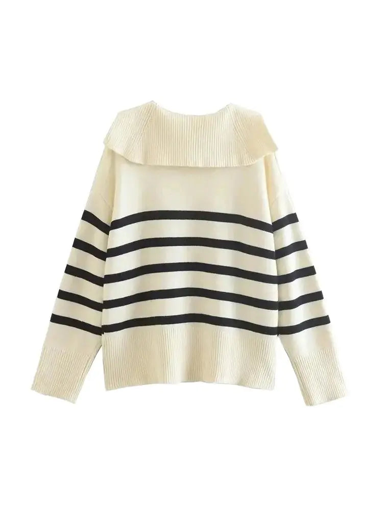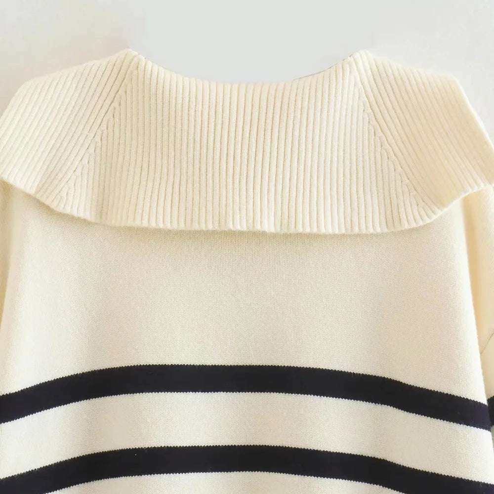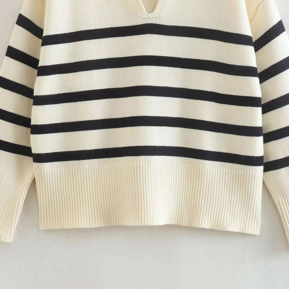The loose fit and vintage-inspired stripes give it a chic and effortless look, perfect for any occasion. With long sleeves and a cozy knit, it's the ideal piece to keep you warm and fashionable during the colder months.