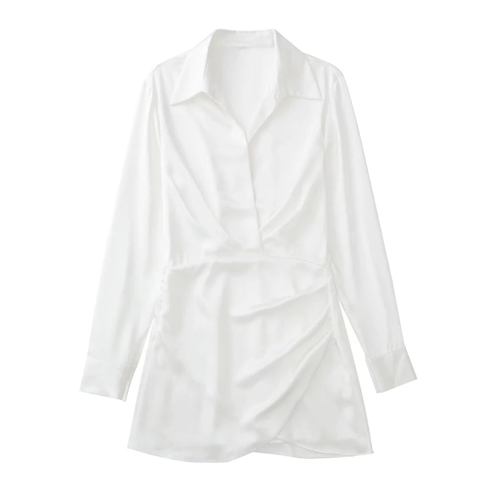 Welcome to our online store, where fashion meets elegance. Introducing our latest addition, the Long Sleeve ruched satin dress. Made from high-quality polyester, this dress is designed to make you stand out in any occasion.