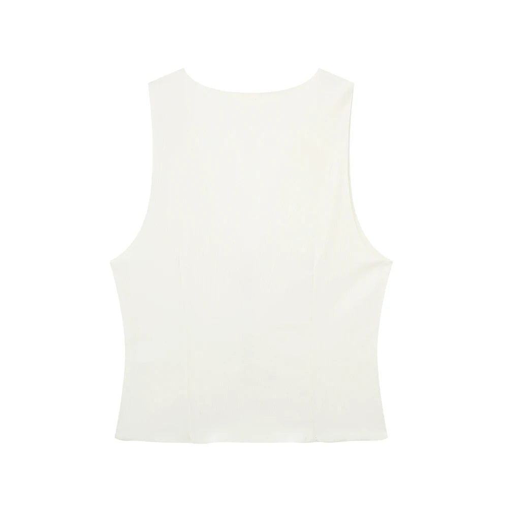 The sleek v-neckline adds a touch of sophistication, while the sleeveless design allows for easy layering and versatility.