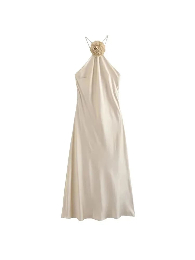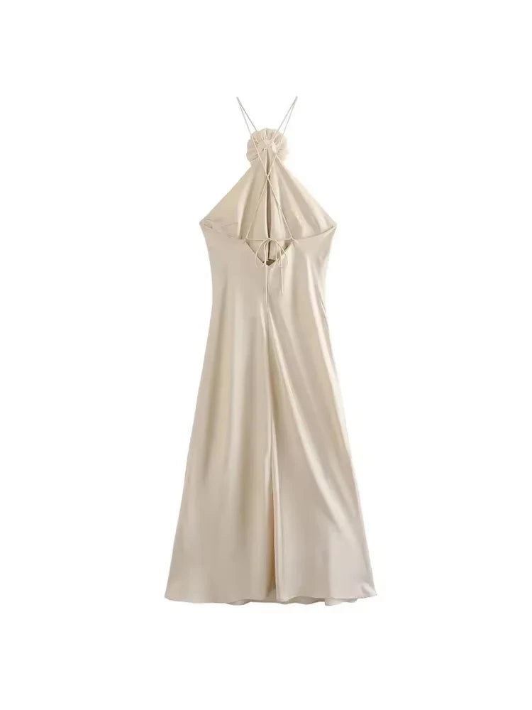 Introducing the Flower Halter low back Midi Dress, the perfect addition to your wardrobe for any occasion.